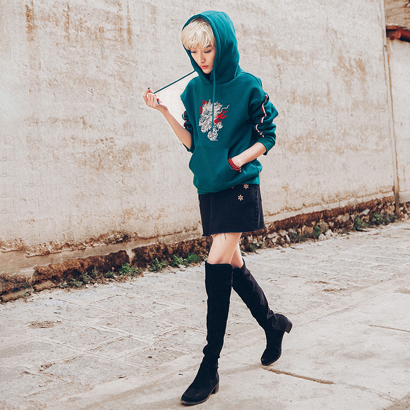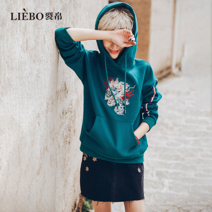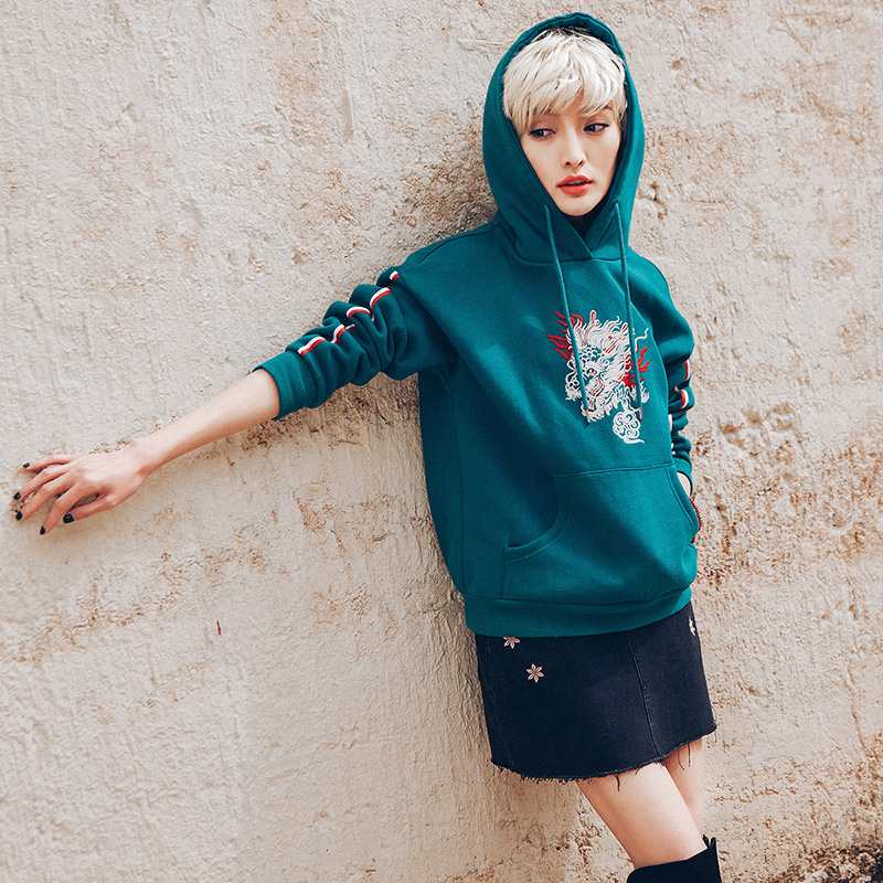 裂帛2023冬季新款上衣原创设计复古龙纹刺绣连帽休闲中国风卫衣女