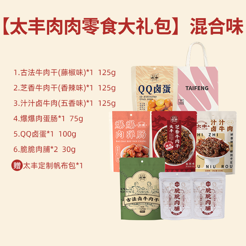 【达人专属】太丰食品牛肉干零食脆脆肉脯QQ卤蛋肉弹肠零食大礼包