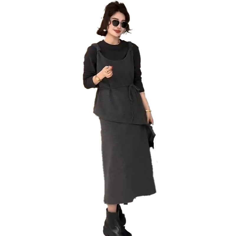 后开叉半身裙系带收腰上衣套装胖mm2025冬季新款显瘦宽松大码女装