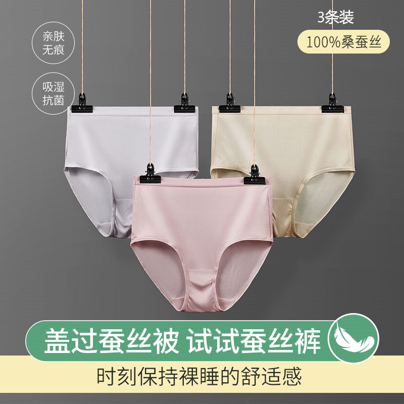 真丝内裤女中高腰无痕桑蚕丝三角裤透气抗菌底裤宝妈内裤