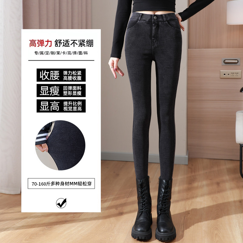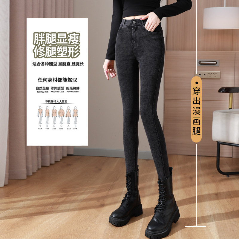 牛仔打底裤女外穿小个子春秋薄款2023新款高腰紧身春季铅笔小黑裤