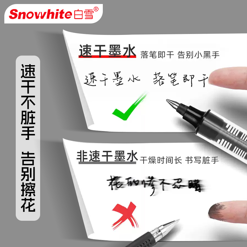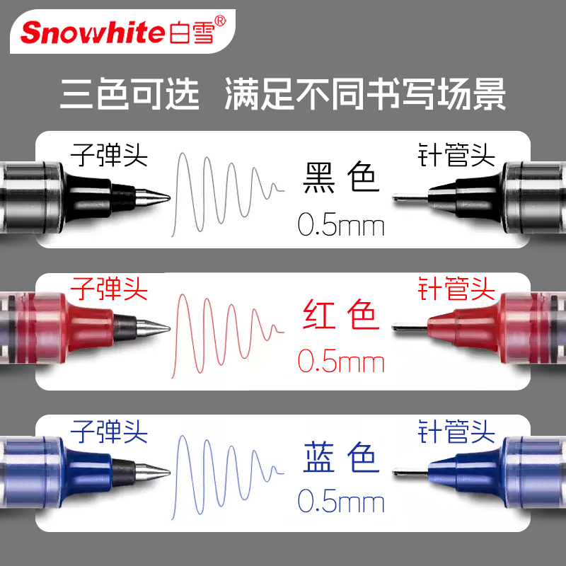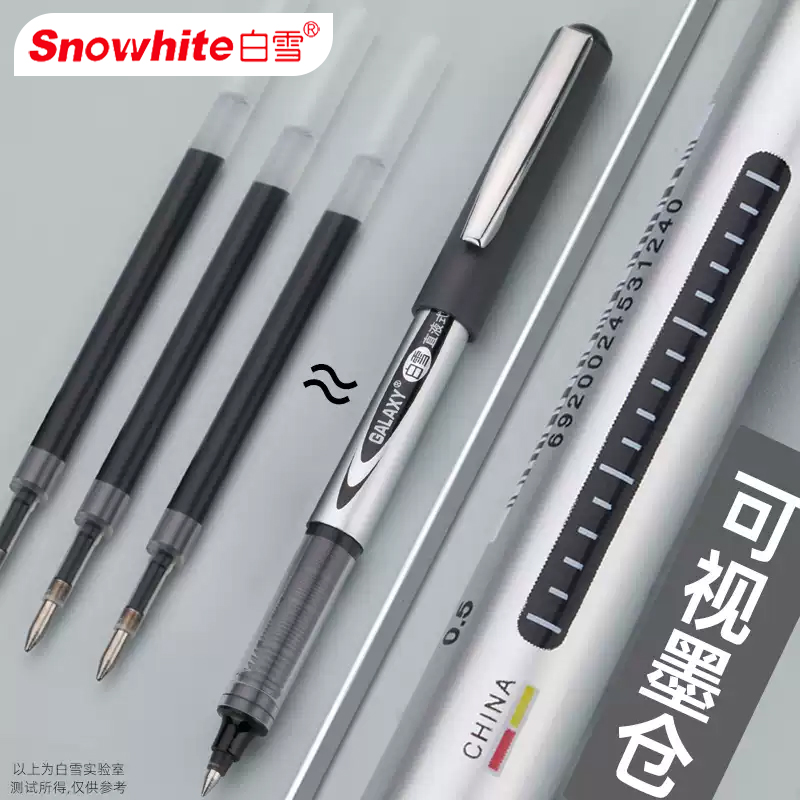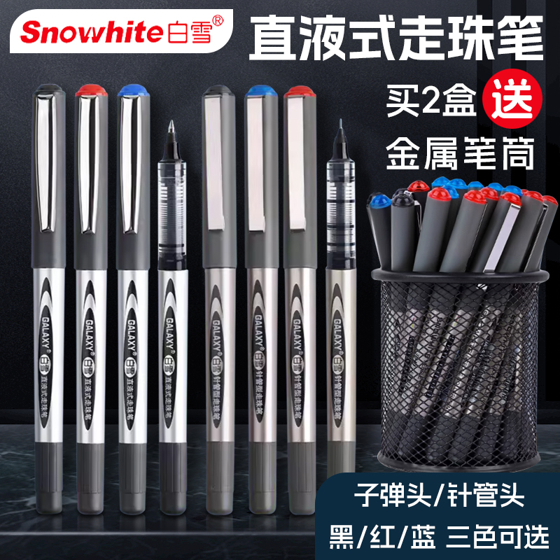 白雪直液式走珠笔0.5mm全针管黑色考试专用水笔学生用碳素签字中性水性直液子弹头水性笔