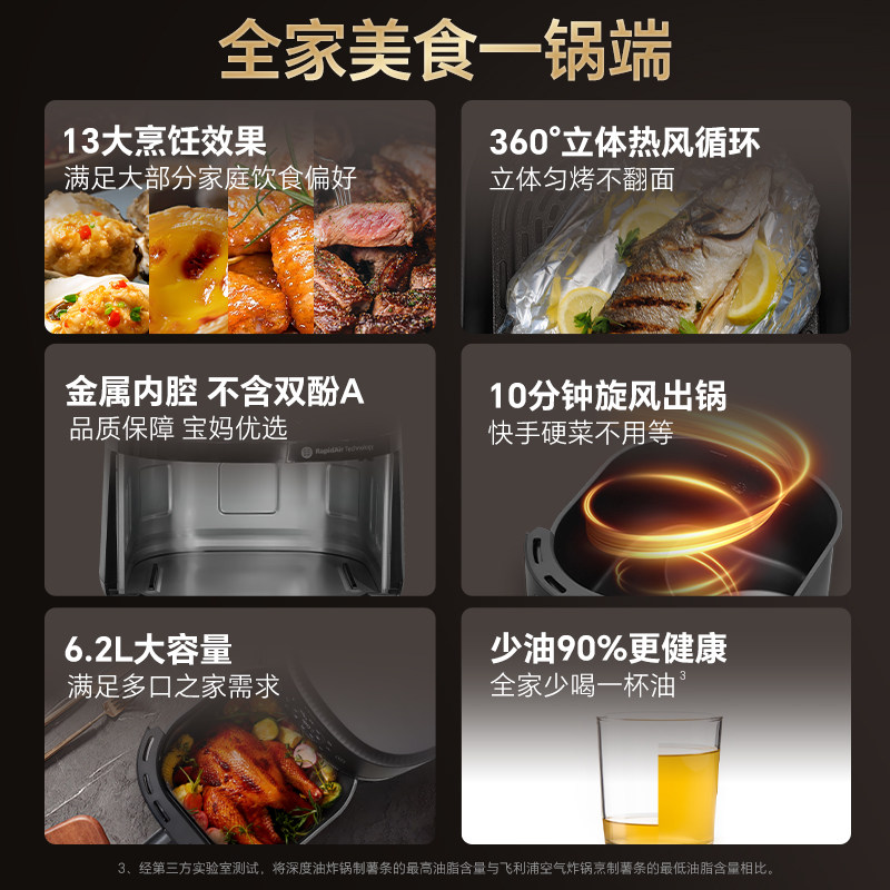 飞利浦多功能空气炸锅NA230可视免翻面家用6.2升大容量炸烤箱一体