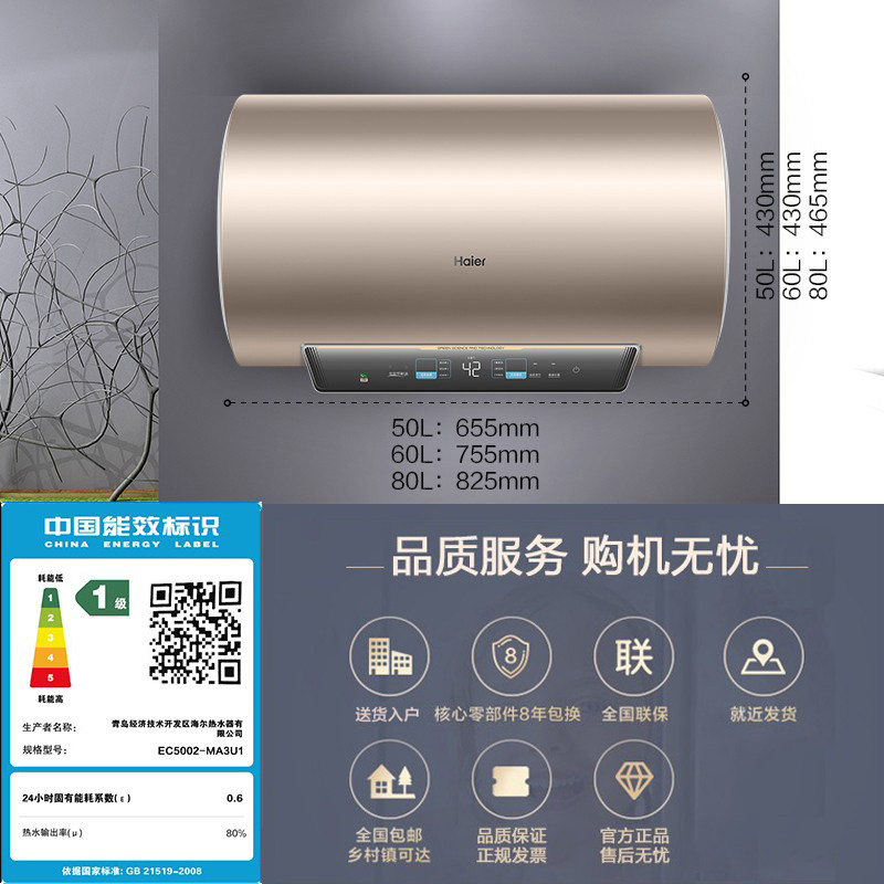 海尔电热水器官方家用卫生间洗澡一级能效镁棒MA3
