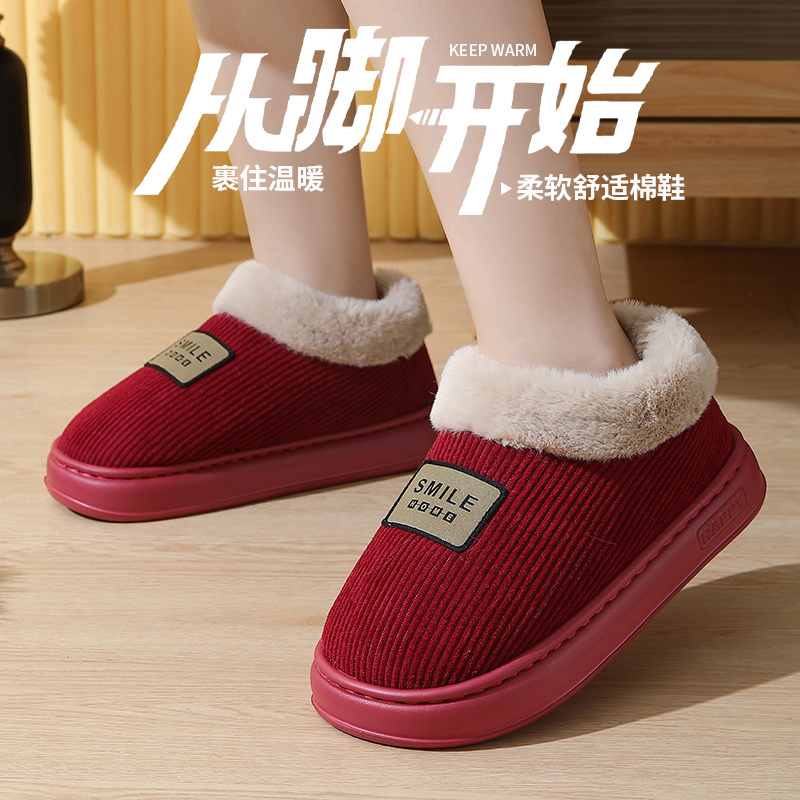 冬季棉拖鞋包跟女厚底防滑中老年情侣家居室内加绒加厚保暖棉鞋男