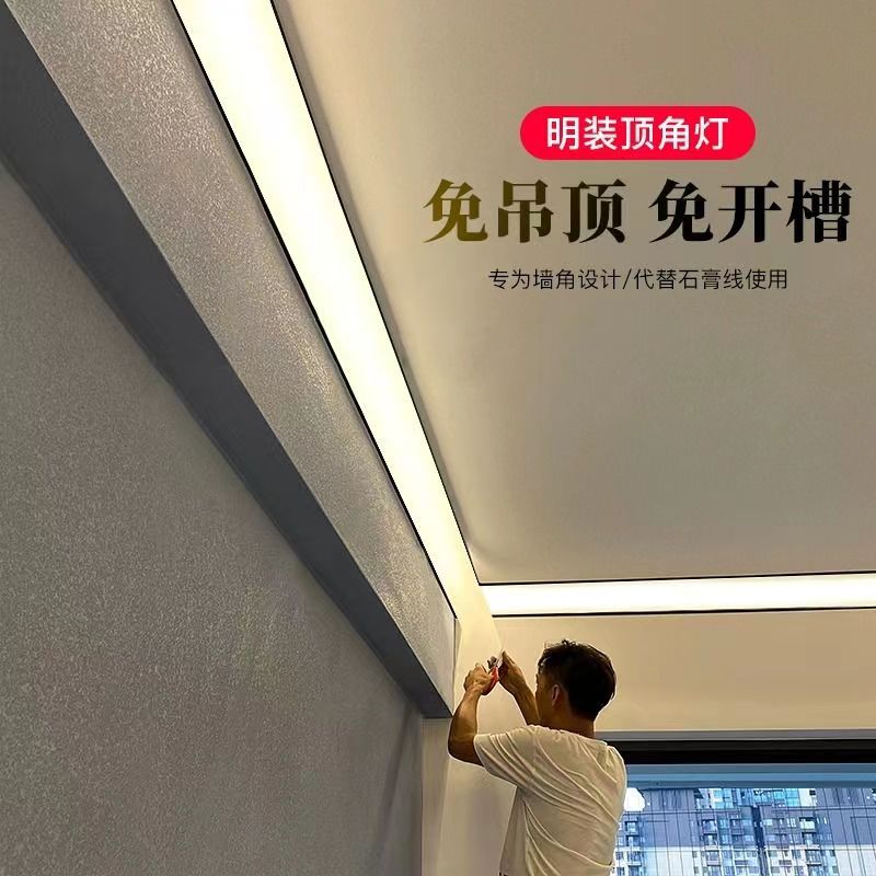 发光顶角线灯免吊顶石膏线灯带阴角线条灯明装线型灯槽无主线性灯