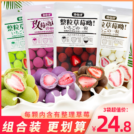 特怡诗整粒草莓冻干夹心巧克力球袋装抹茶玫瑰可可味(代可可脂)