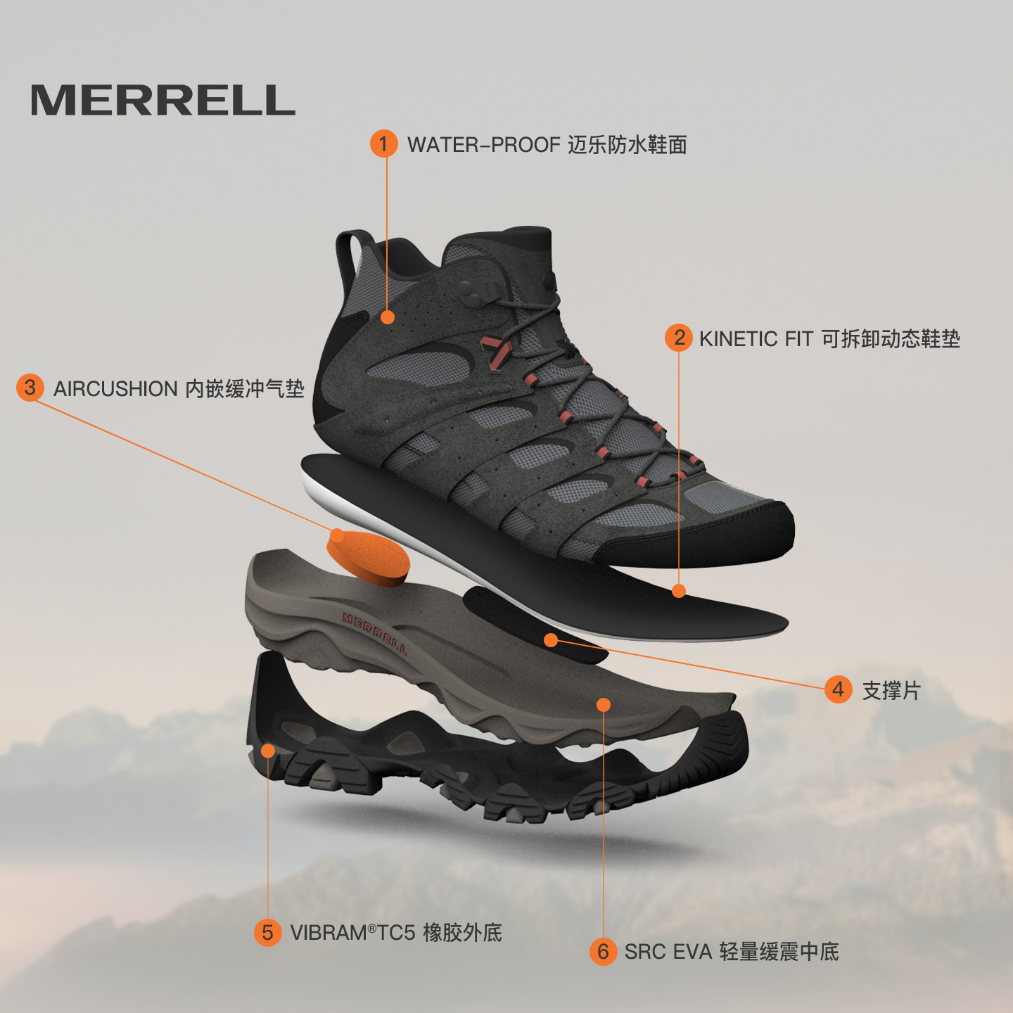 MERRELL迈乐MOAB3 MID WP防泼水抓地防滑户外运动登山徒步鞋男女