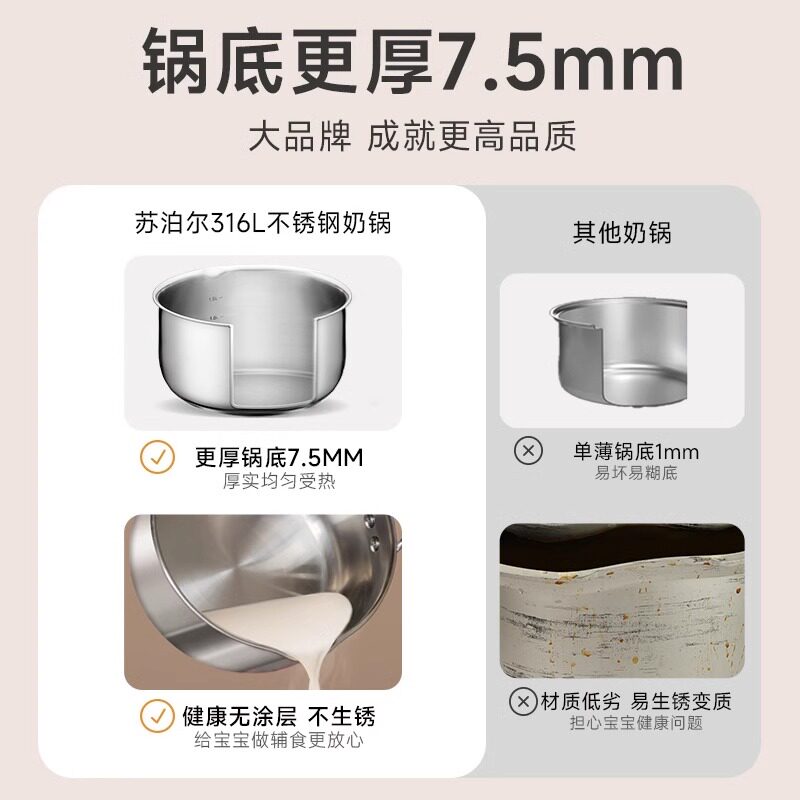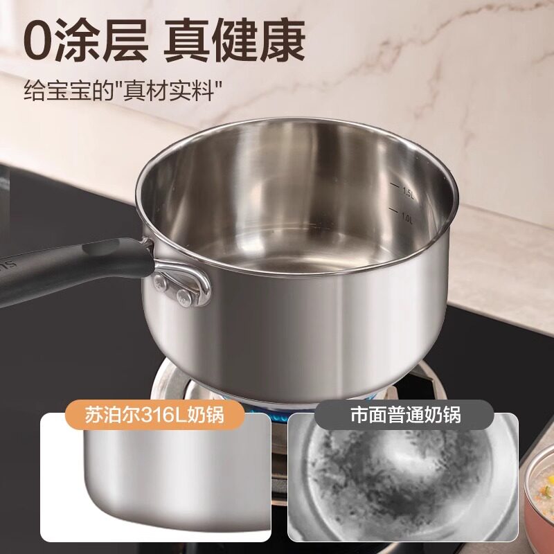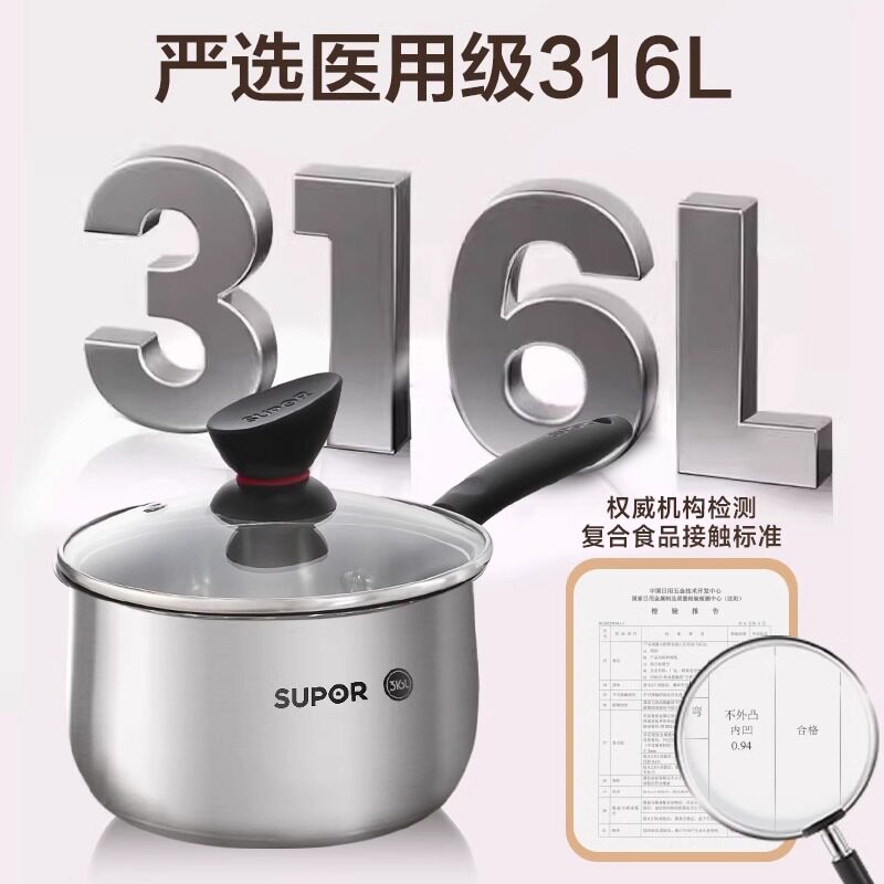 苏泊尔316L不锈钢奶锅家用宝宝辅食锅煮泡面燃气灶用热奶不粘小锅