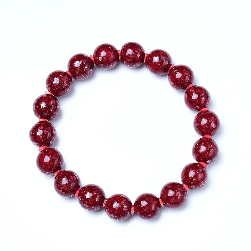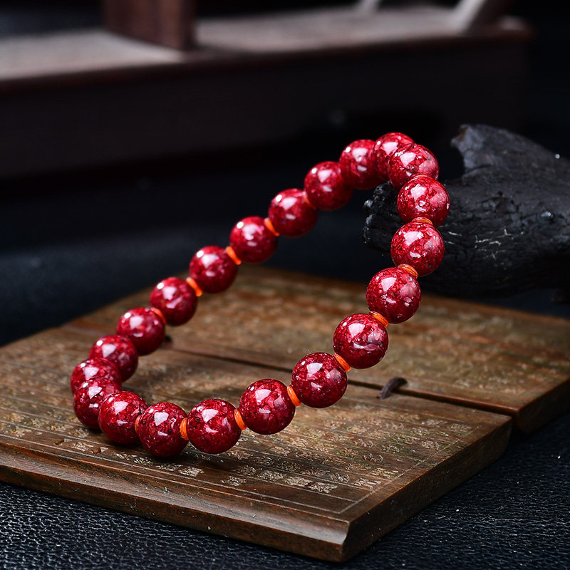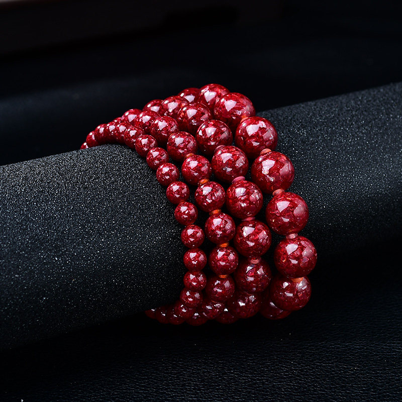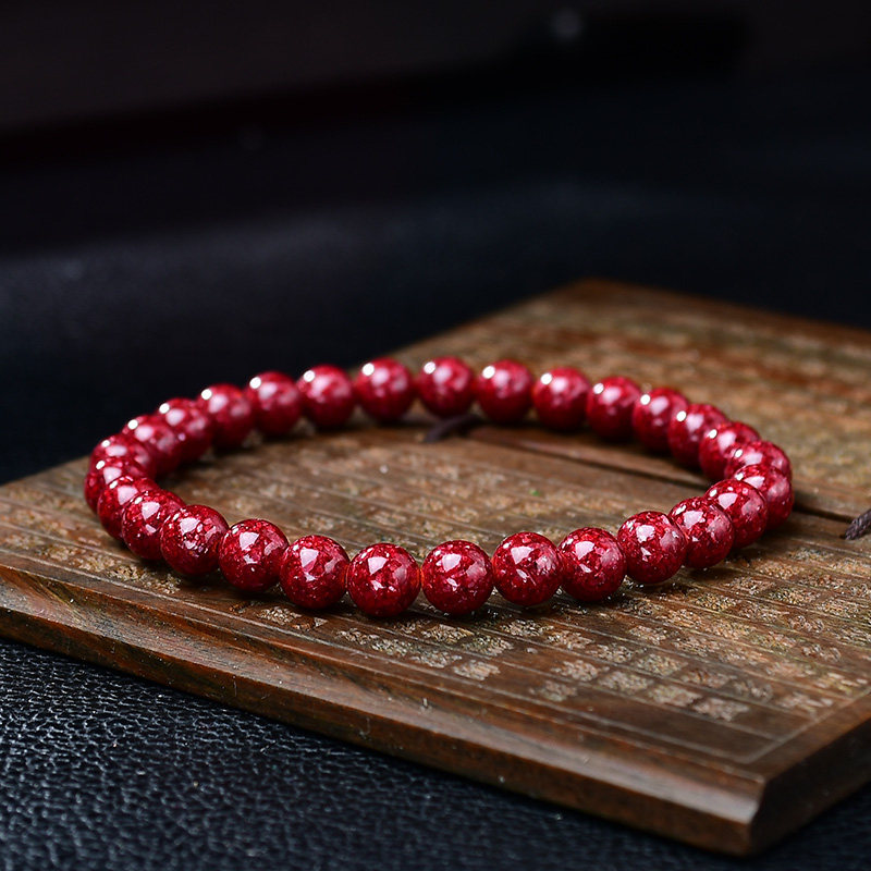 重九朱砂收藏级晶体砂手链高纯度晶体砂手串透光软红宝石