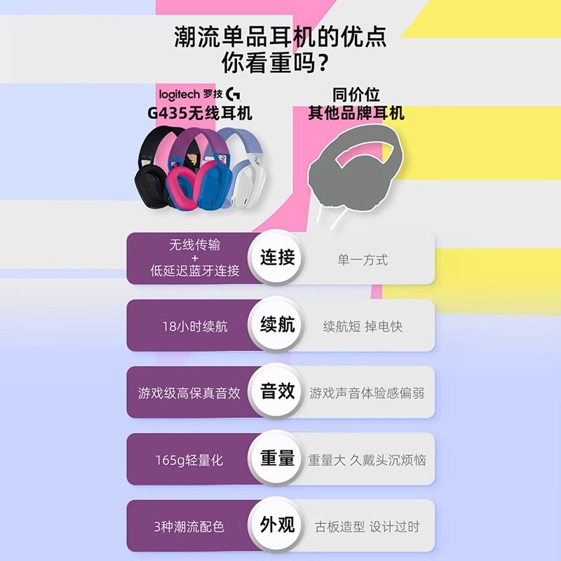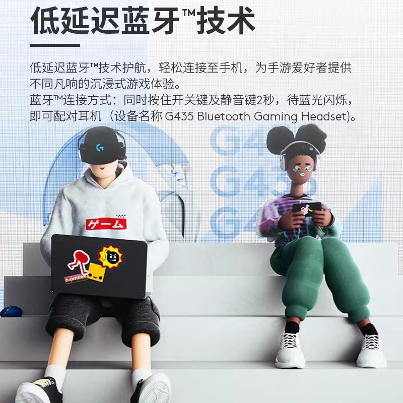 罗技G G435无线游戏耳机蓝牙头戴式带麦电脑耳麦电竞游戏听声辩位