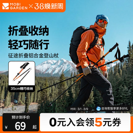 牧高笛折叠轻便铝合金登山杖超轻量专业户外徒步成人男女儿童手杖