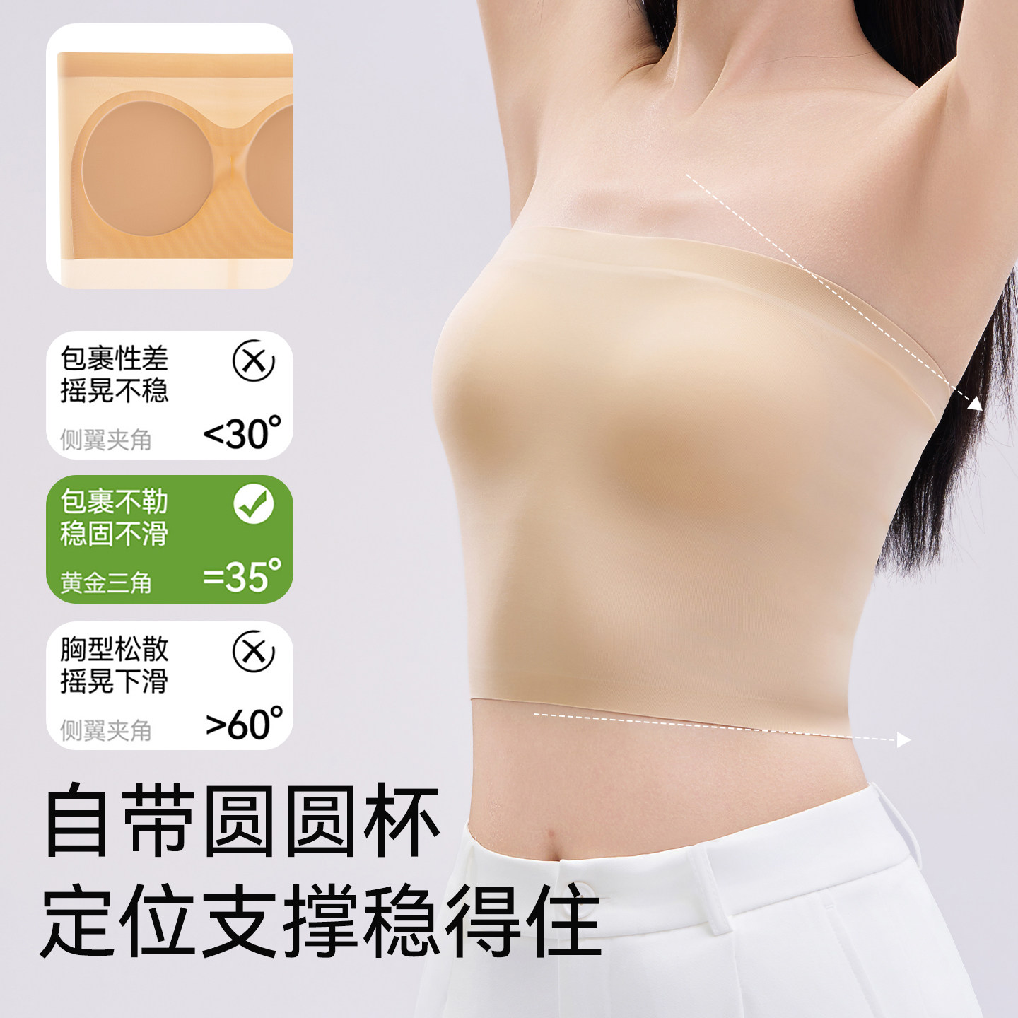 无肩带内衣女防滑聚拢抹胸防走光裹胸美背隐形夏薄款粉底液文胸罩