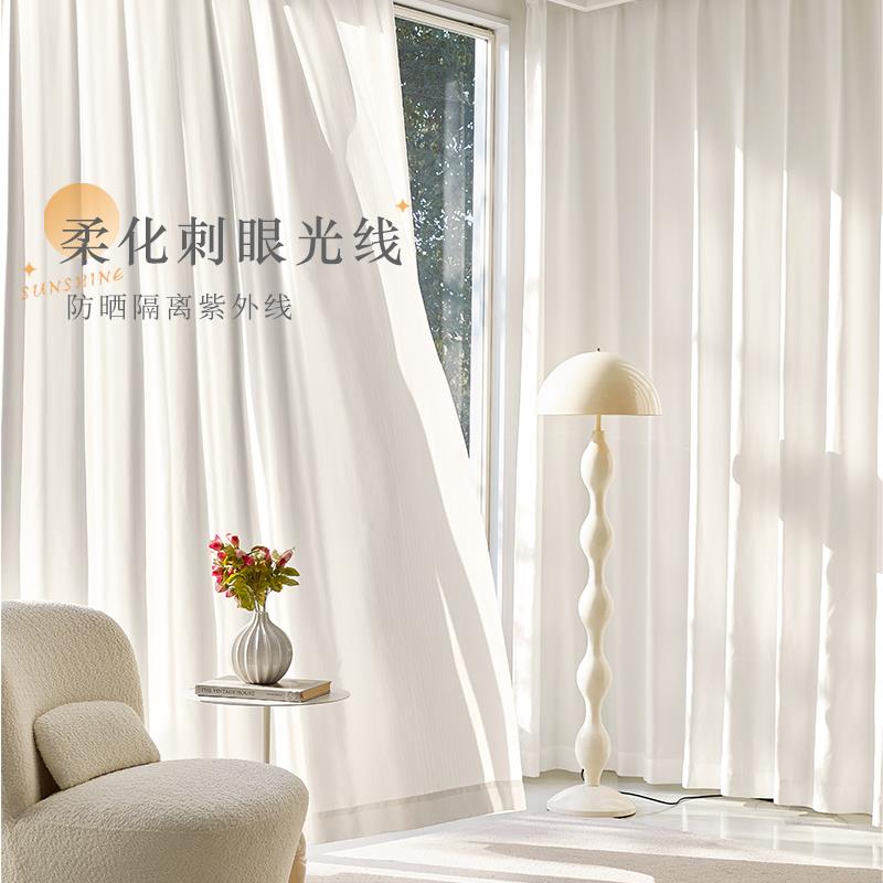 幻影纱窗帘纱帘透光不透人卧室客厅阳台白色防晒隔热飘窗白色窗纱