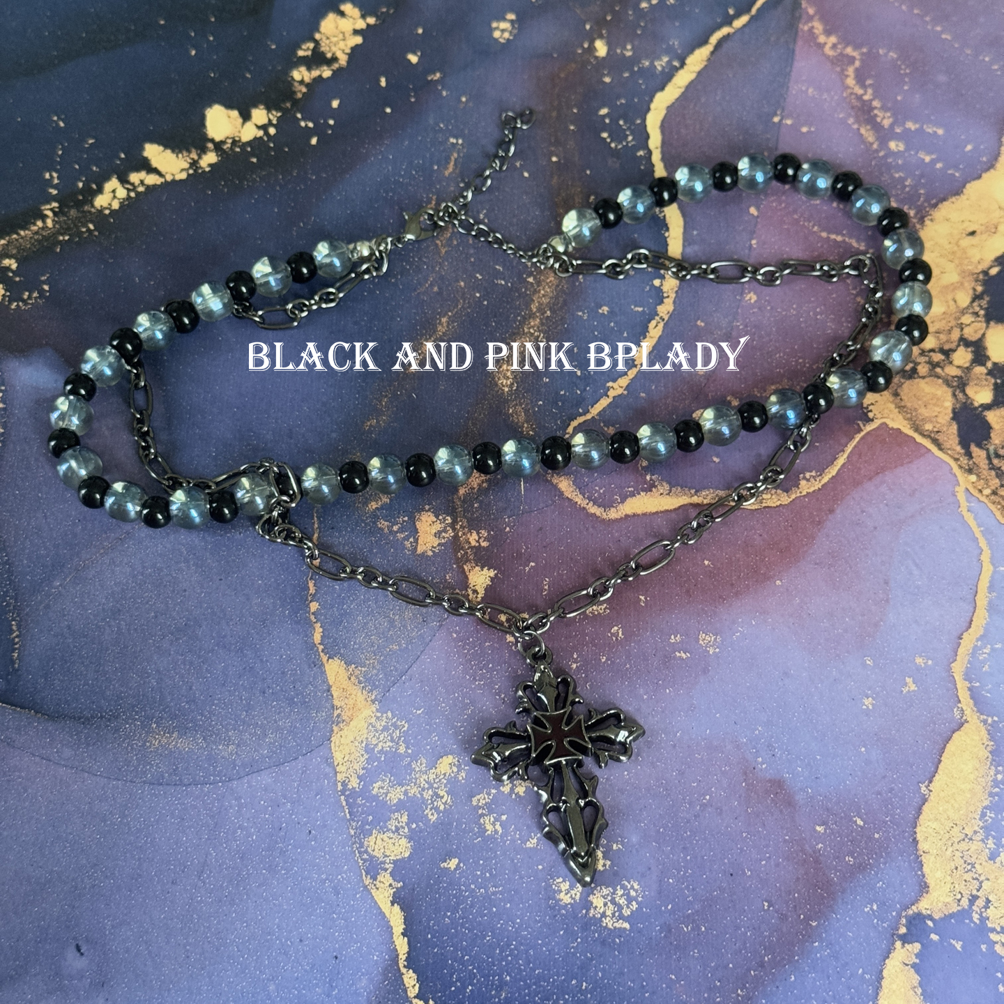 暗黑哥特风蓝水晶串珠十字架项链女小众y2k嘻哈朋克个性锁骨颈链