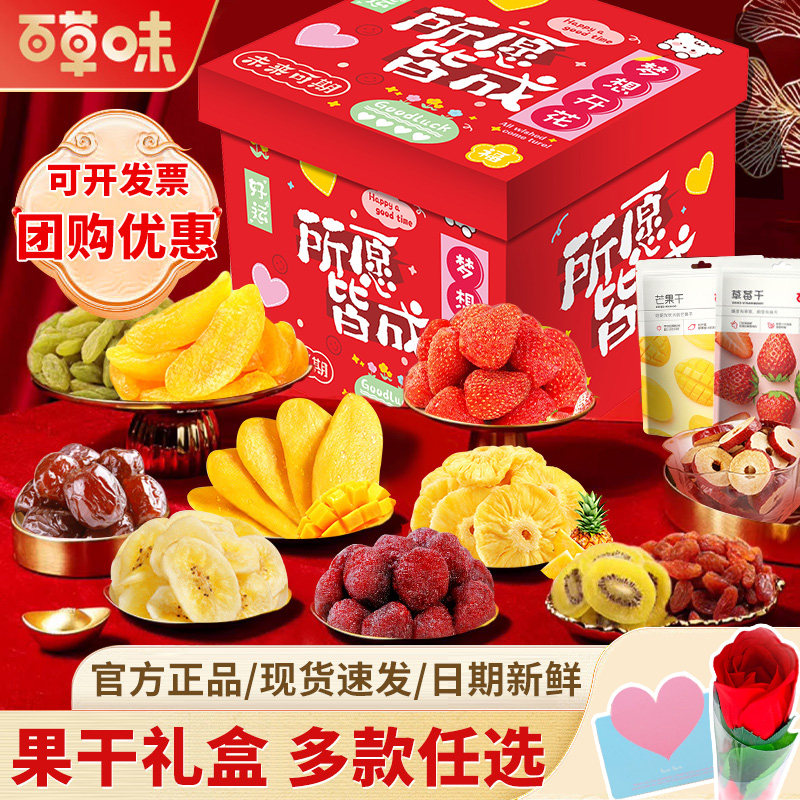 百草味水果干零食大礼包芒果干送女友三八礼物混合装果脯蜜饯礼盒