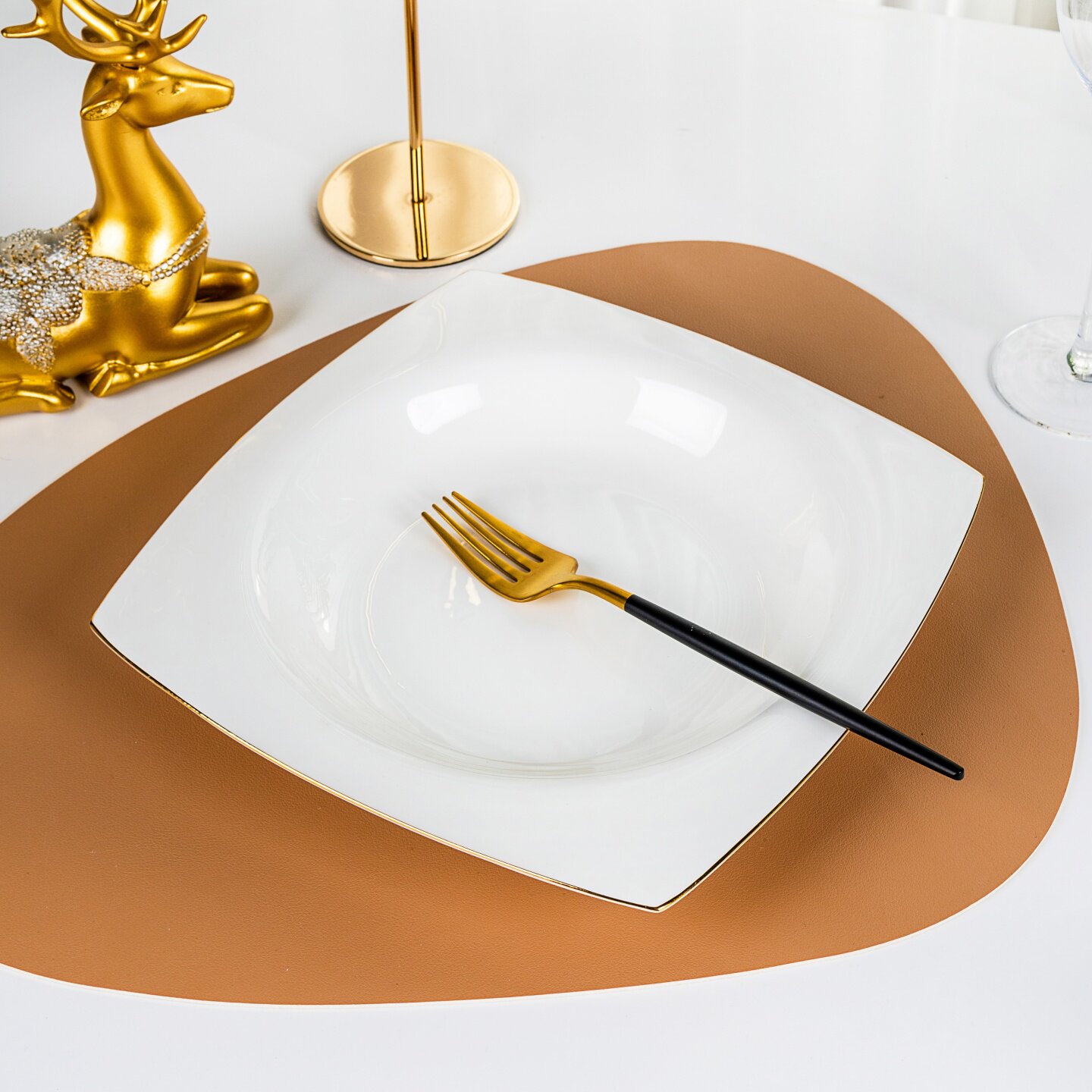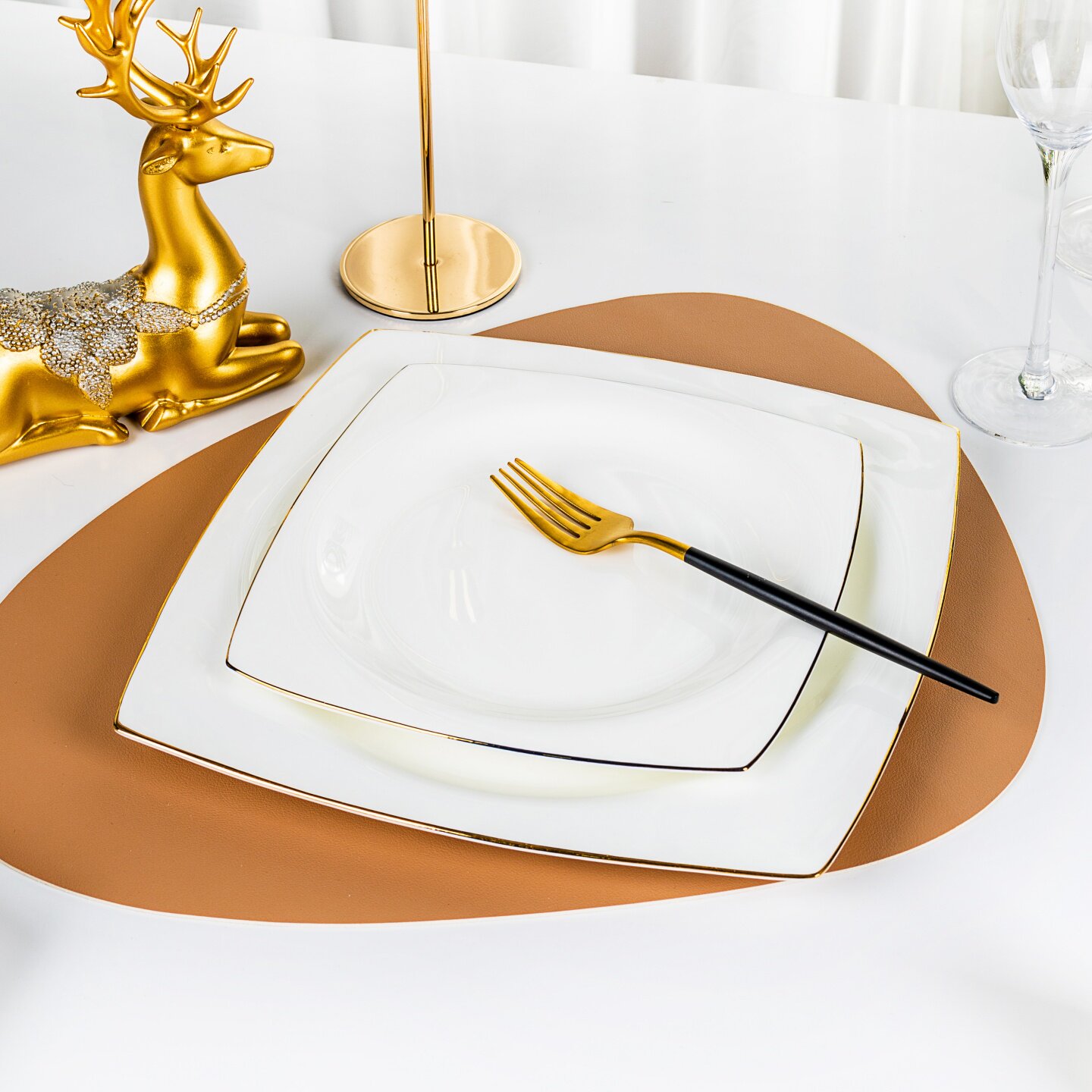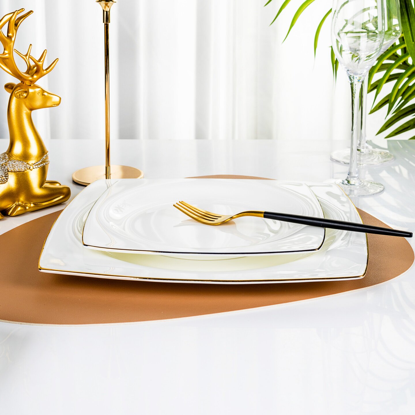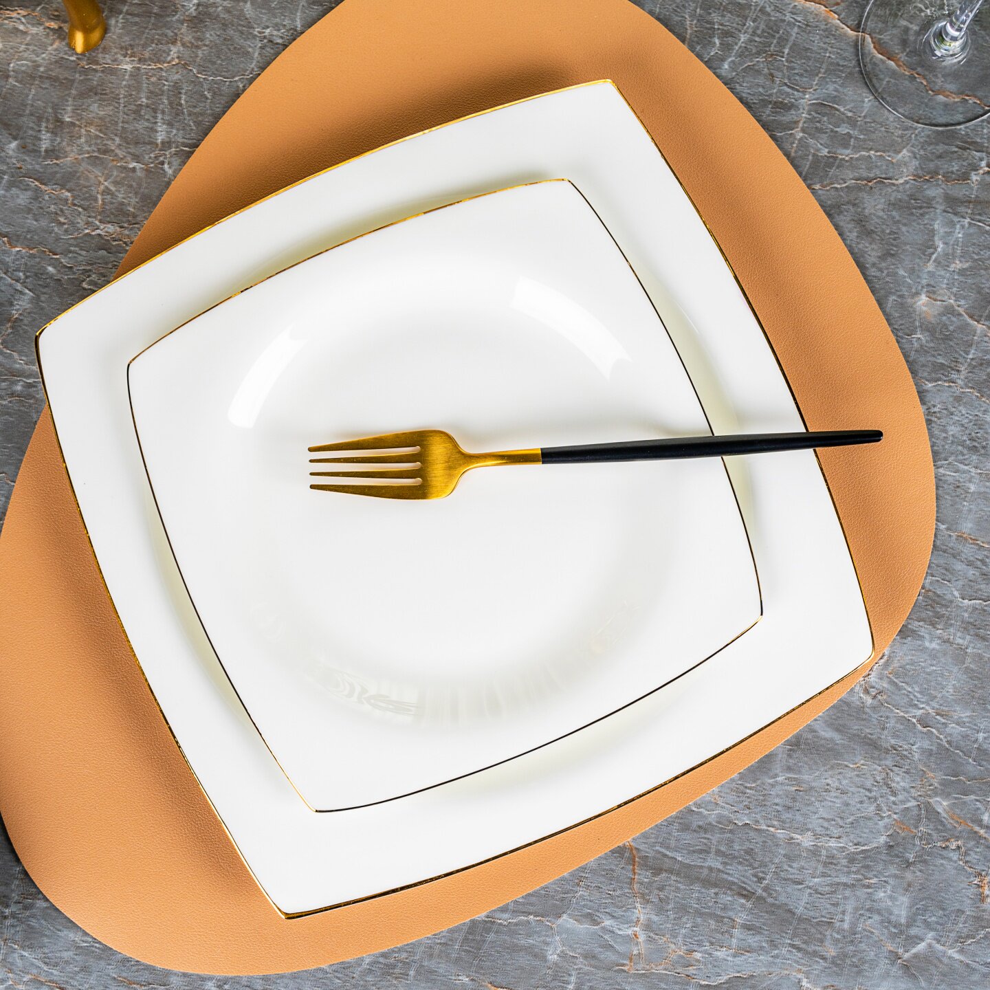 骨瓷金边盘子菜盘家用陶瓷碟子餐盘创意水果盘方形菜碟餐具套装