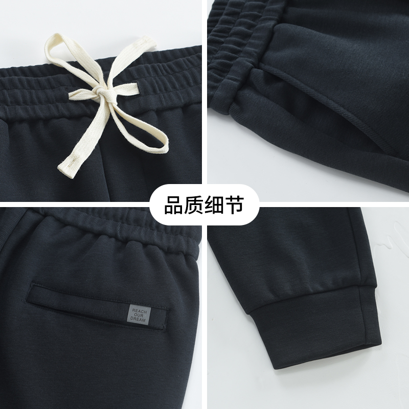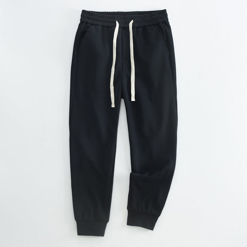 汉絮精梳螺纹棉针织束脚休闲裤男款春秋季宽松微锥九分裤男运动裤