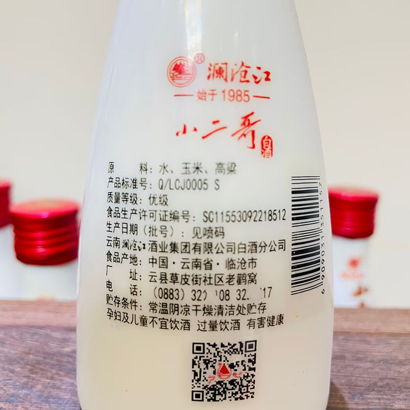 澜沧江白酒系列 澜沧江小二哥酒 46度125mlx12瓶 玉米高粱清香型