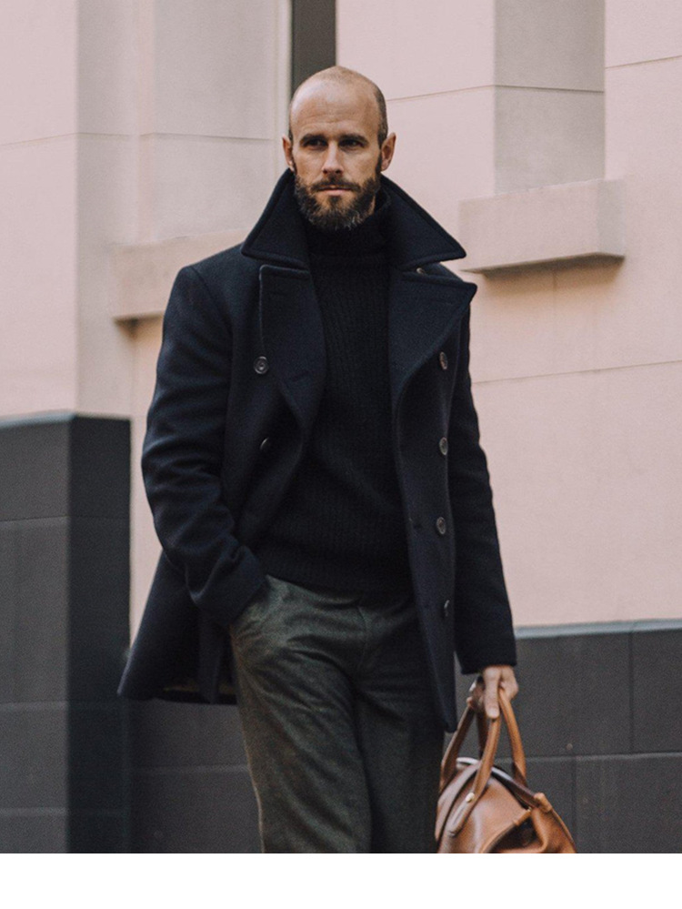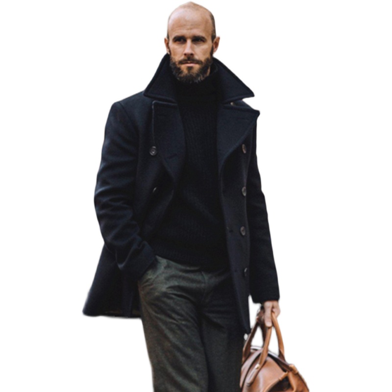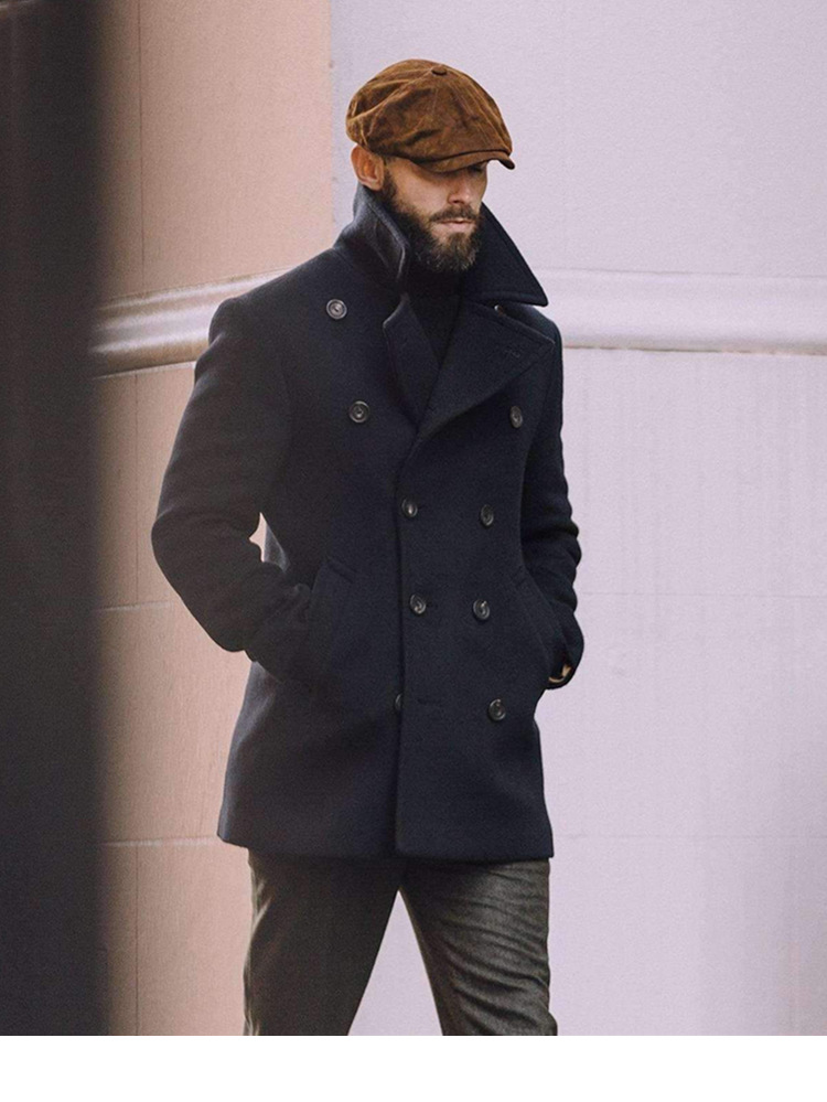美式复古海军呢大衣男士经典双排扣pea coat秋冬加厚重磅羊毛外套
