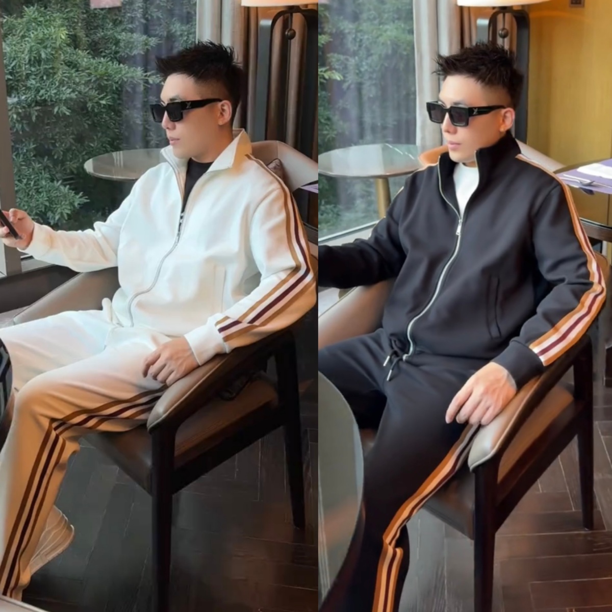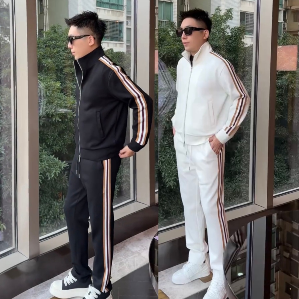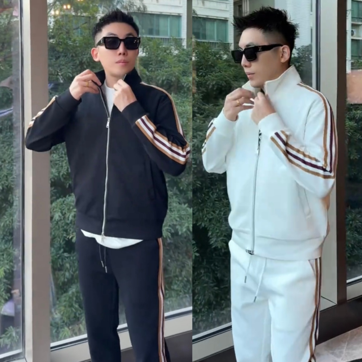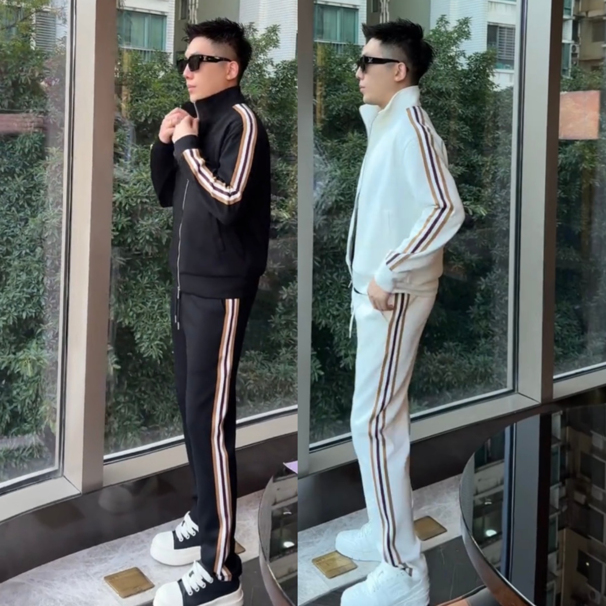 秋季潮牌轻奢拼接条纹休闲运动套装男高档立领夹克外套长裤两件套