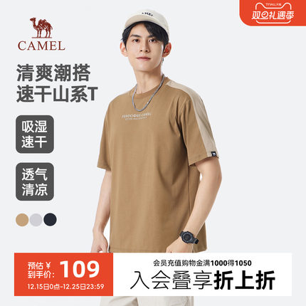 骆驼男装短袖T恤男夏季2025新款宽松中性款户外休闲速干圆领T恤