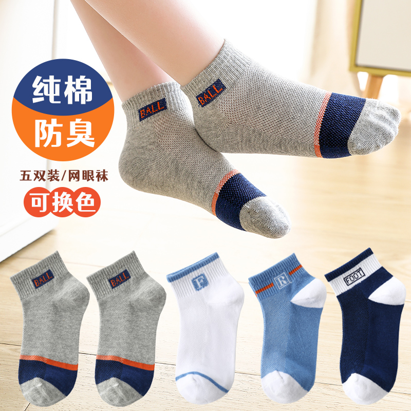男童袜子纯棉夏薄款短袜大童男孩学生船袜夏季透气网眼超薄儿童袜
