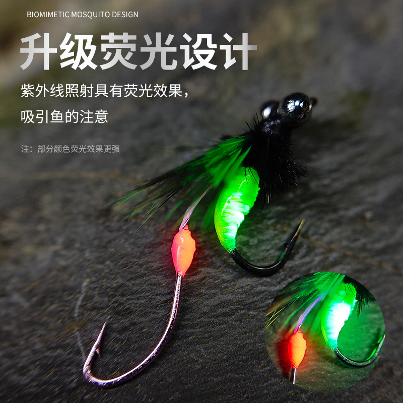 响尾蛇毒蚊飞蝇钩双钩钓组微物路亚饵白条马口翘嘴瓜子亮片仿生饵