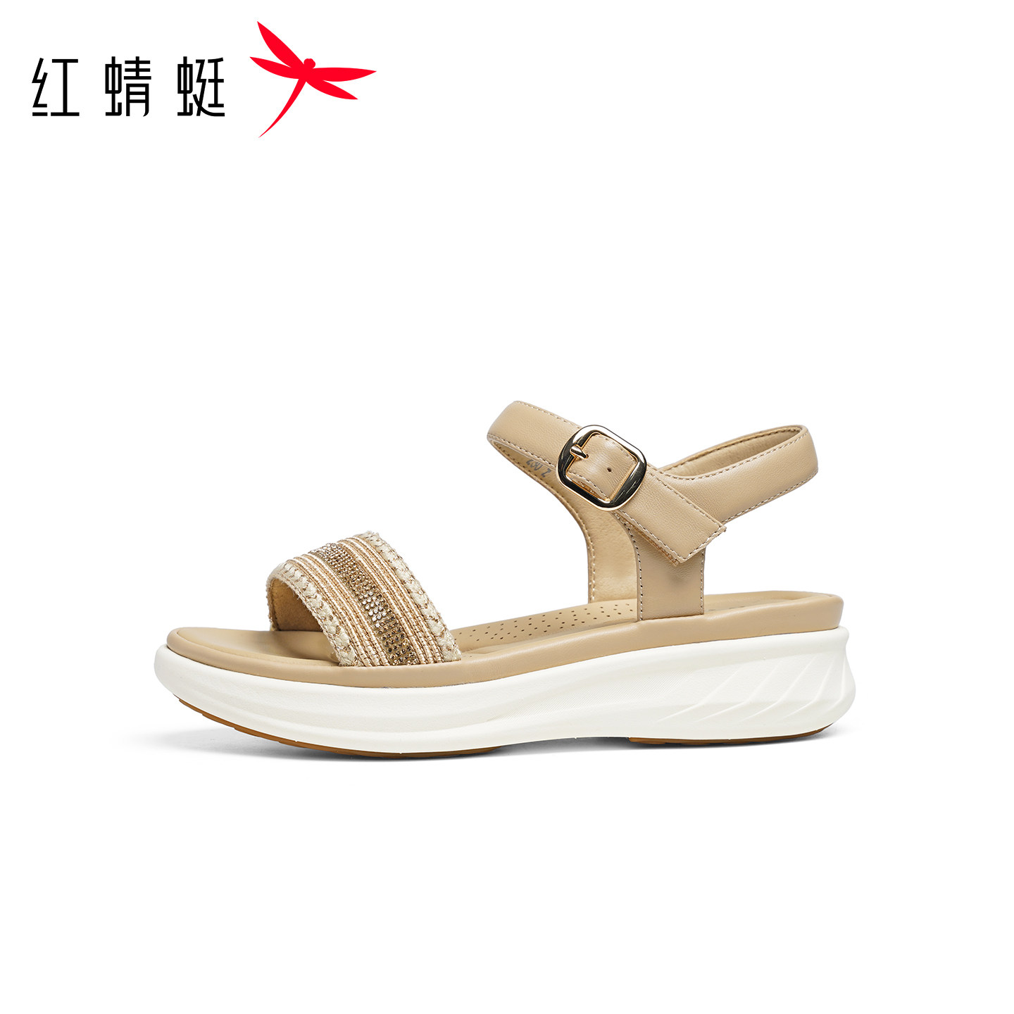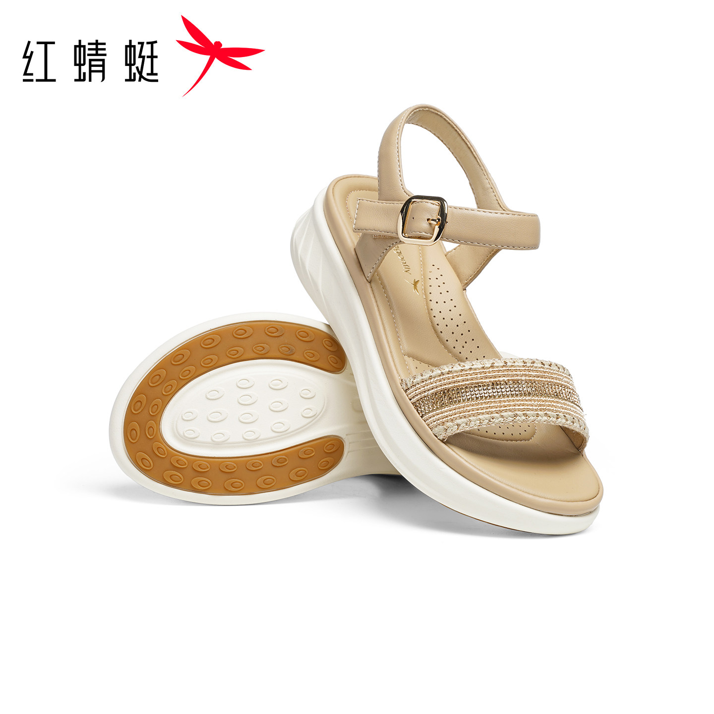 红蜻蜓妈妈凉鞋2026夏季新款女鞋一字带厚底凉鞋舒适软底女士鞋子