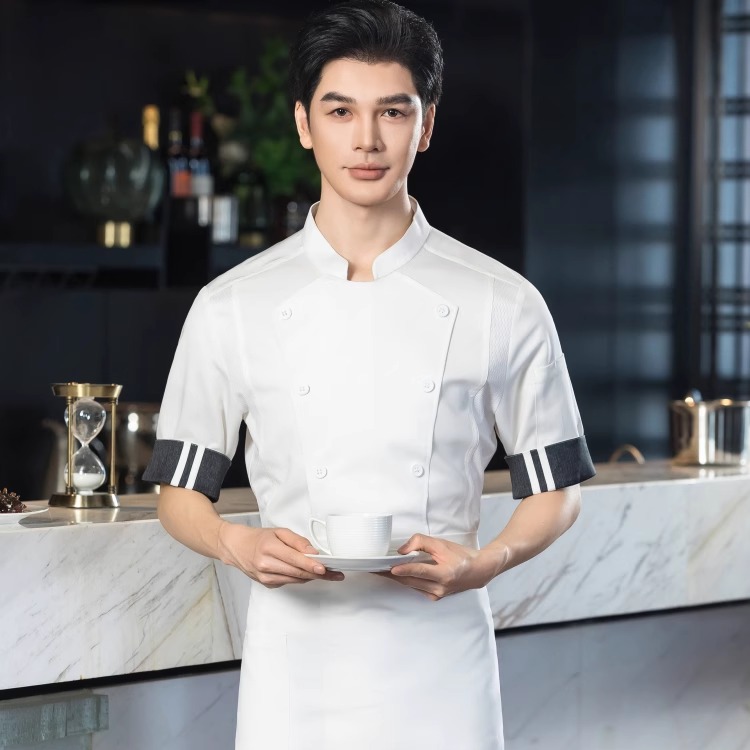 厨师服2024年夏季新款五分袖中袖透气高档酒店餐饮后厨厨房工作服