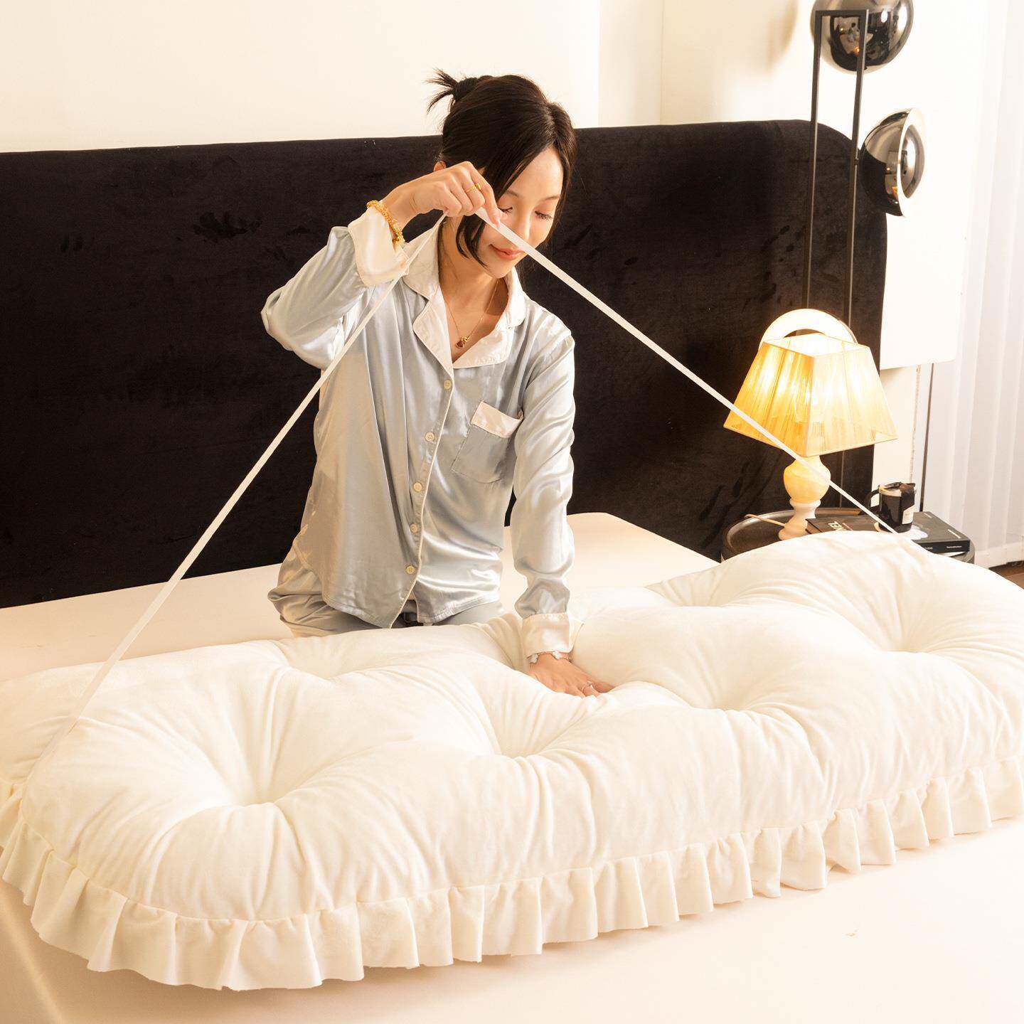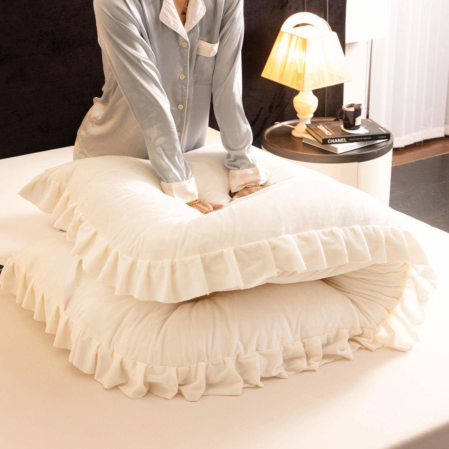 韩厅系奶油风居家床头软包靠靠背榻榻米护韩版水晶腰书垫飘窗看客