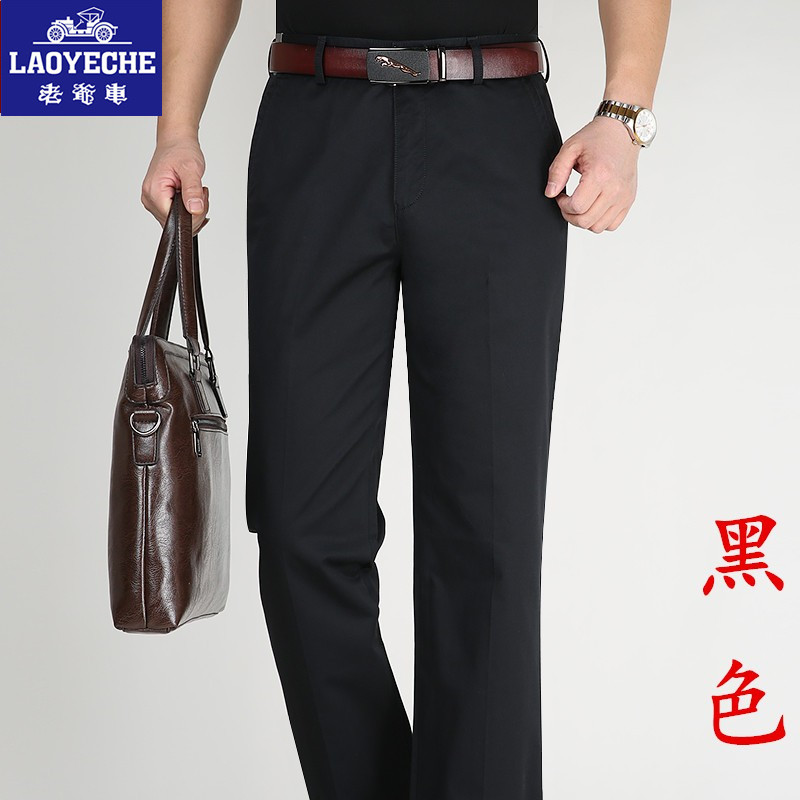 老爷车100%纯棉休闲裤春夏薄款中老年商务男裤高腰宽松直筒长裤子