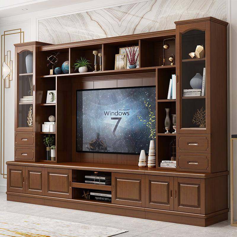 现代简约电视柜组合中式实木墙柜客厅多功能储物背景柜组装影视柜