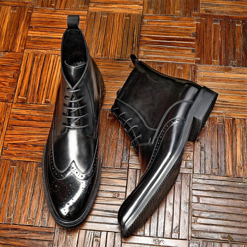 广州汉慕思粒面雕花牛皮轻便鞋底男马丁靴英伦布洛克翘头防滑短靴