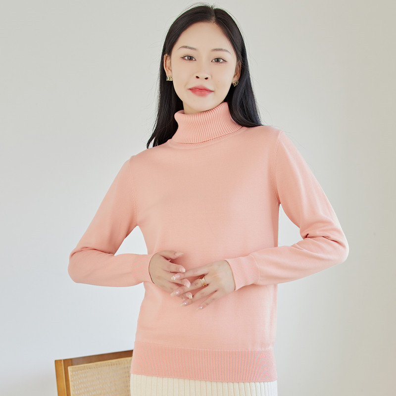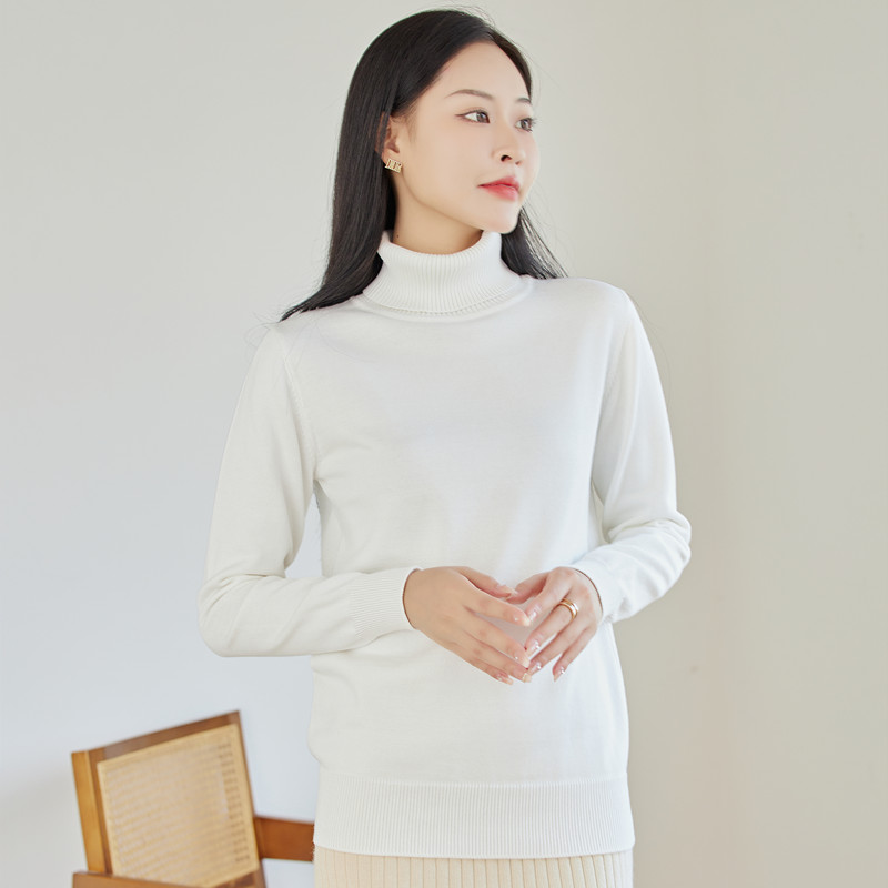 东润莲品牌纯棉毛衣长绒棉针织衫女式高领套头长袖打底衫简约通勤