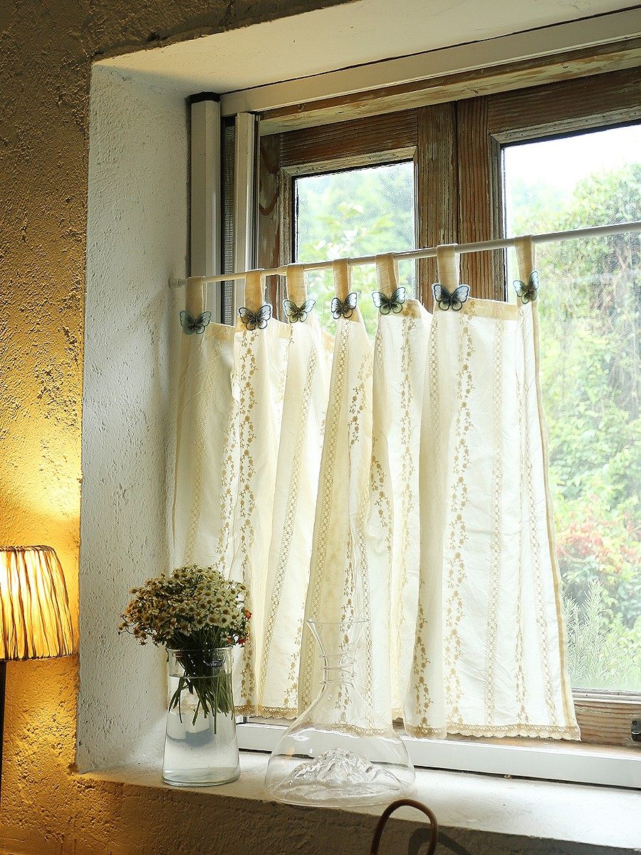 鸢尾乡旅奶油色棉布绣花遮光半帘门帘窗帘窗纱定制卧室客厅厨房