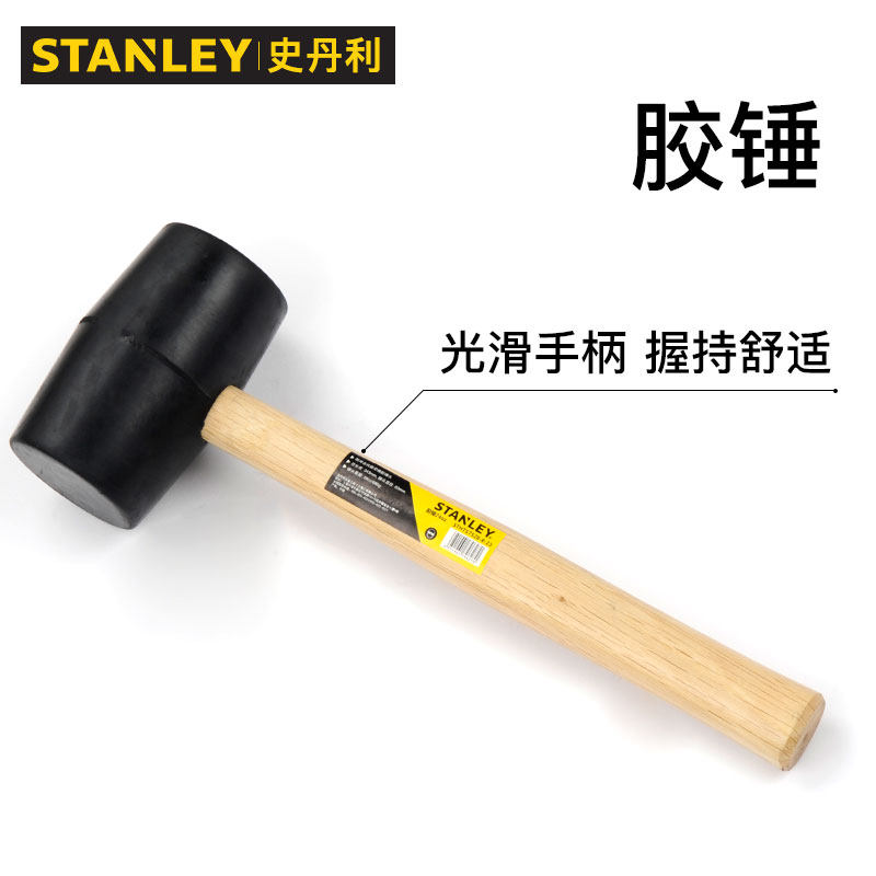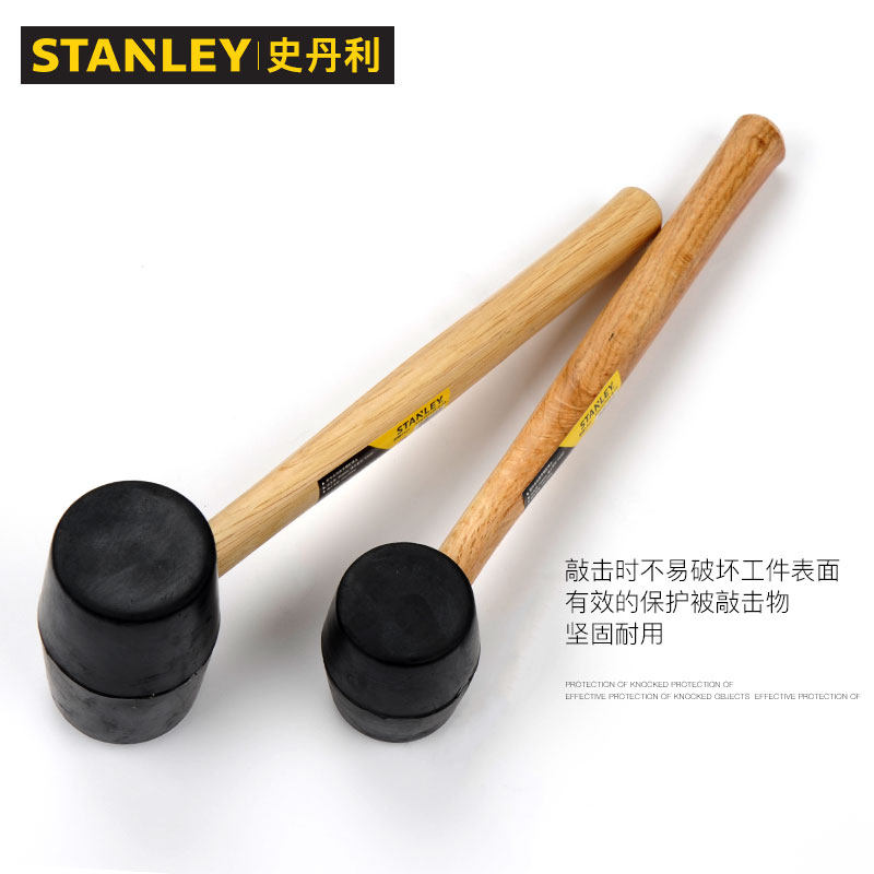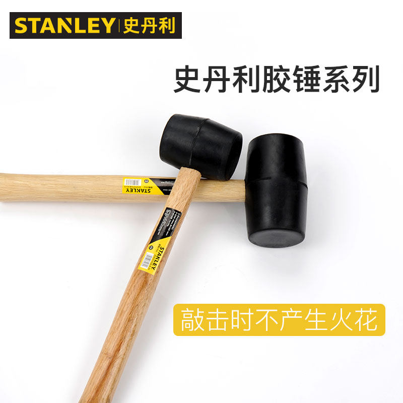 史丹利胶锤工业级耐冲击铺地砖木柄橡皮榔头不产生火花小橡胶锤子