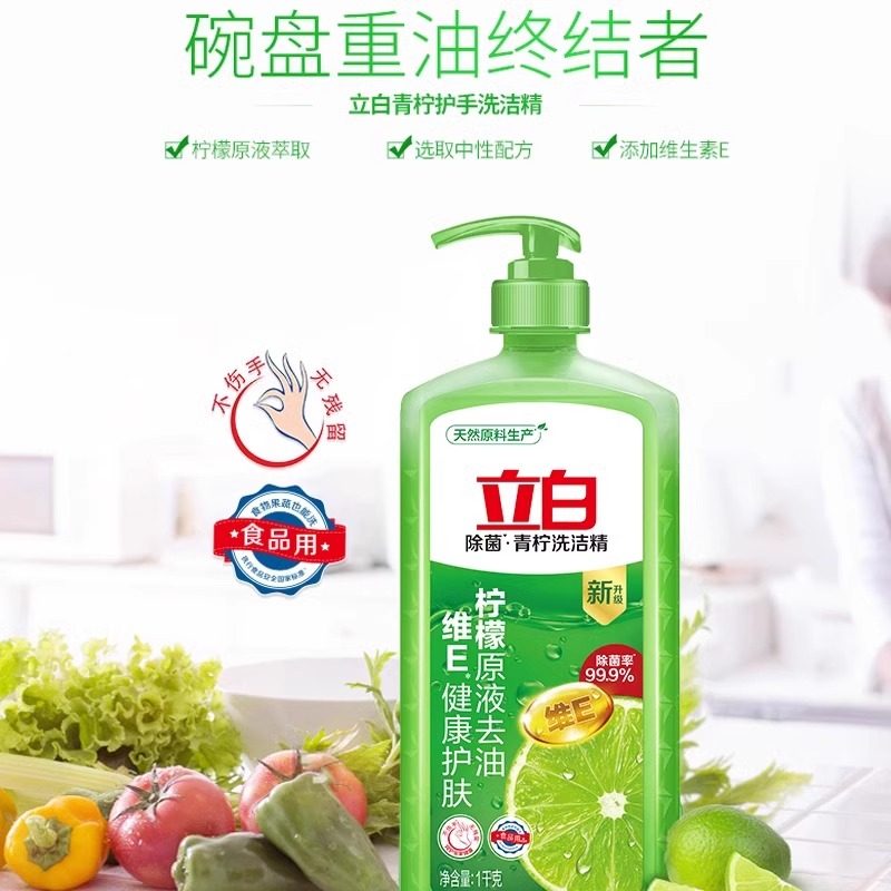 立白青柠洗洁精除菌去油家用厨房宿舍不伤手按压瓶洗涤灵官方正品