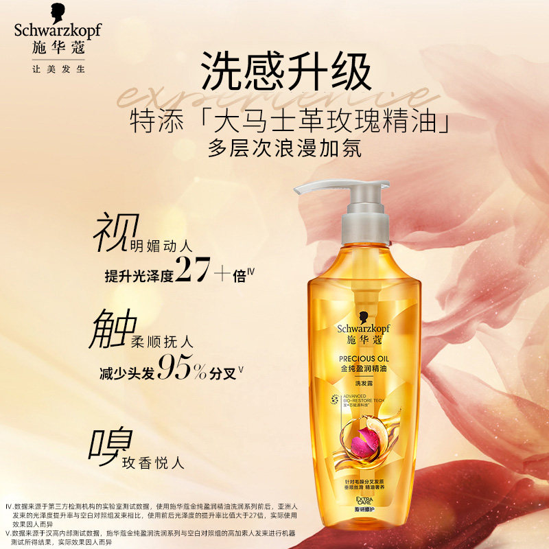 施华蔻金纯盈润精油洗发水改善毛躁温和修护滋润清洁洗发水洗发露