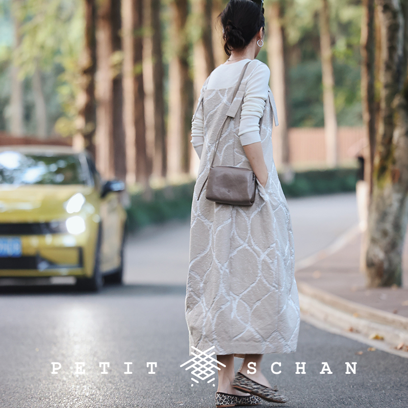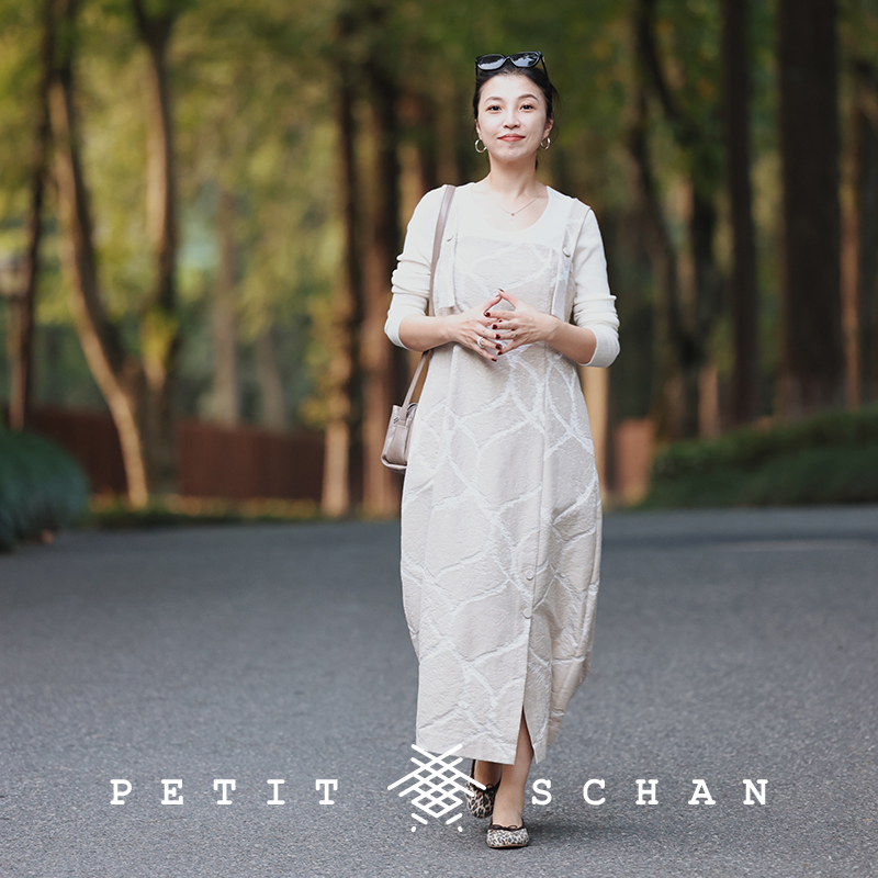 Petit Schan小闪 香槟金提花微茧型设计感背带连衣裙