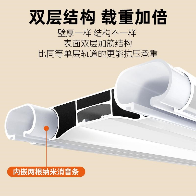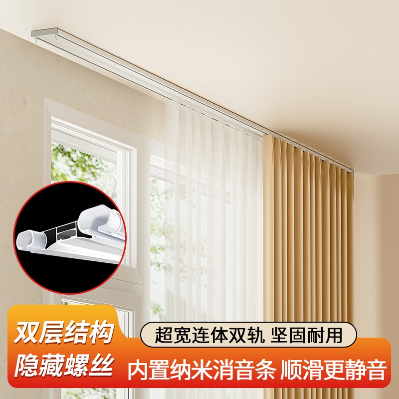 窗帘轨道双层静音滑轨p侧装顶装铝合金导轨隐形螺丝客厅卧室双轨