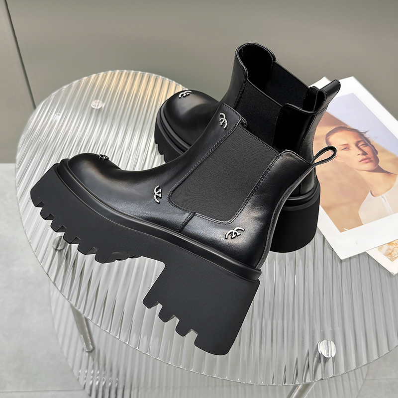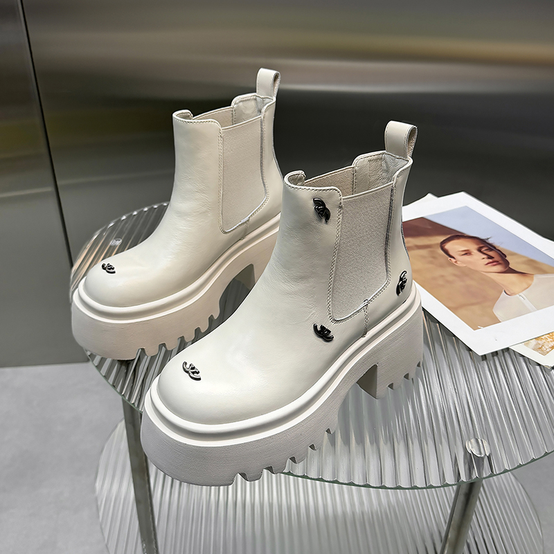 胎牛皮增高粗跟切尔西短靴女高跟鞋2025秋冬新款真皮烟筒马丁靴女