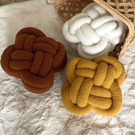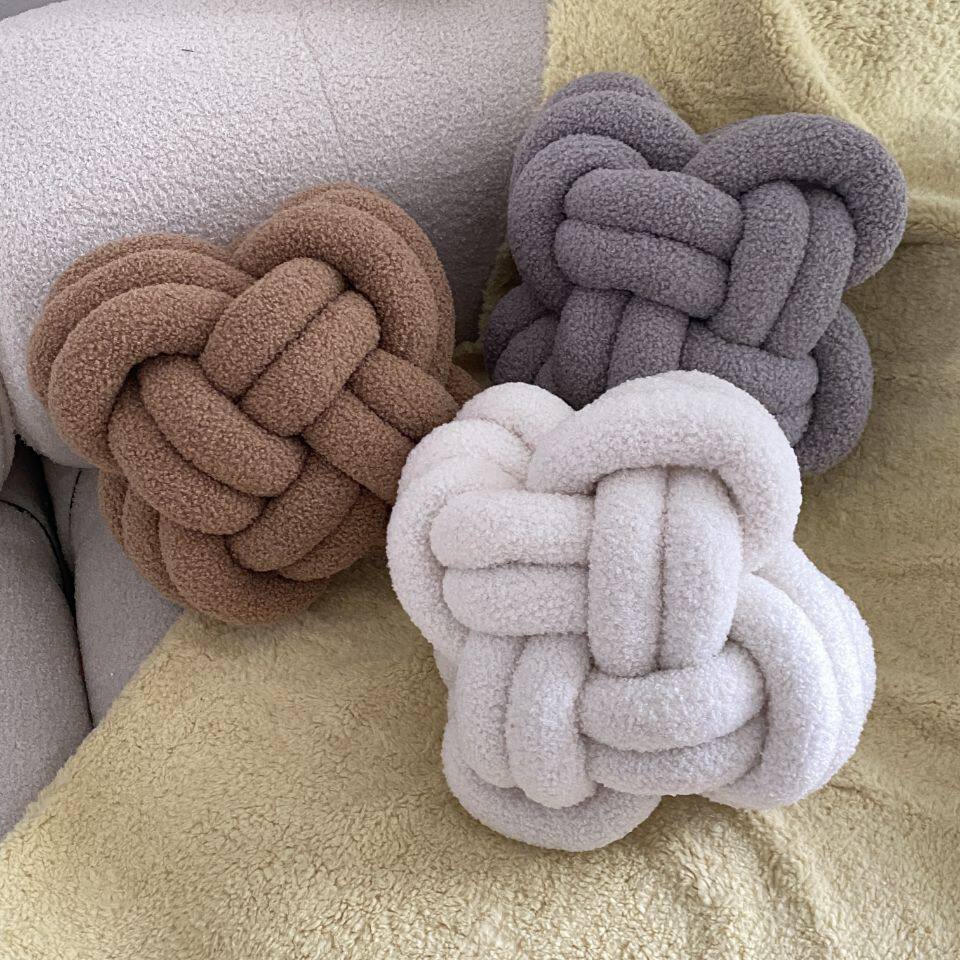 ins羊羔绒打结编织抱枕花型靠枕丹麦Knot球中国结沙发样板间装饰