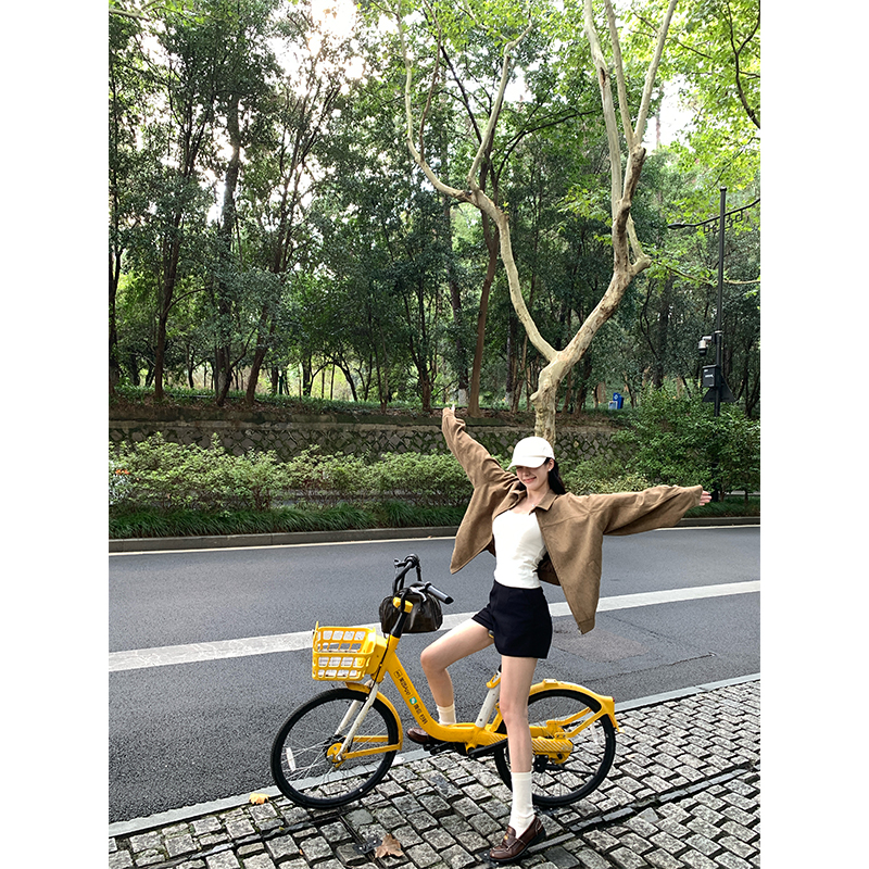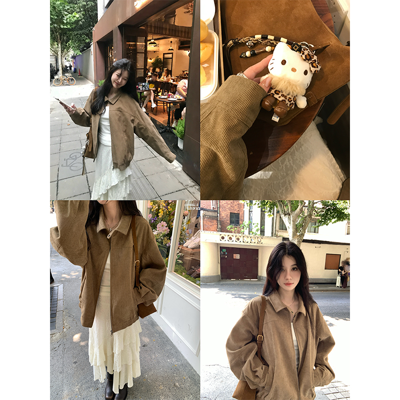VASSE美蟹 美式复古古着风翻领卡其灯芯绒外套女秋宽松慵懒夹克