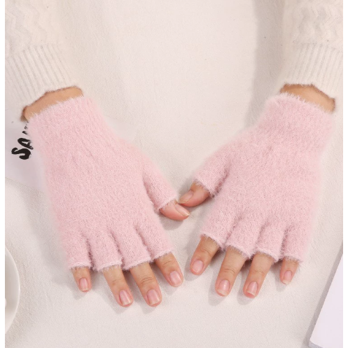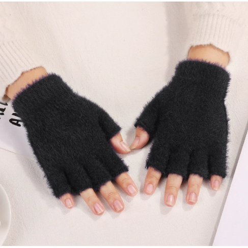 新款成年人冬季保暖针织半掌半指手套男生女生半截露指纯色手套