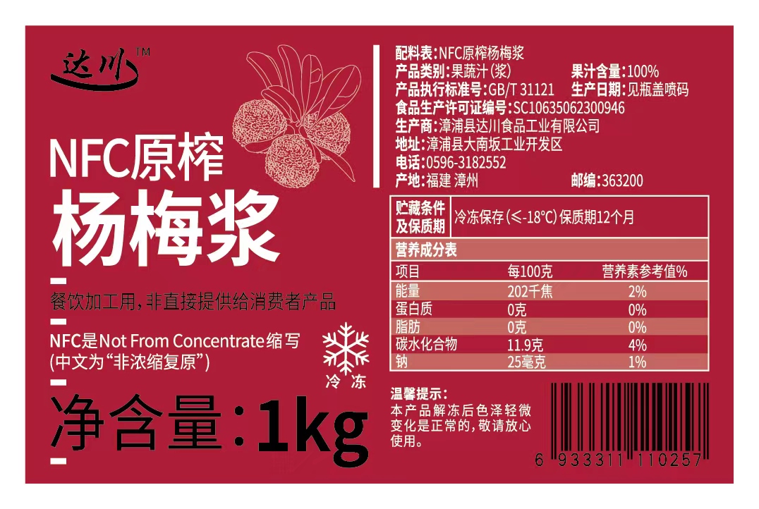 达川NFC冷冻杨梅汁100%多肉霸气杨梅原料奶茶水果茶专用非浓缩鲜