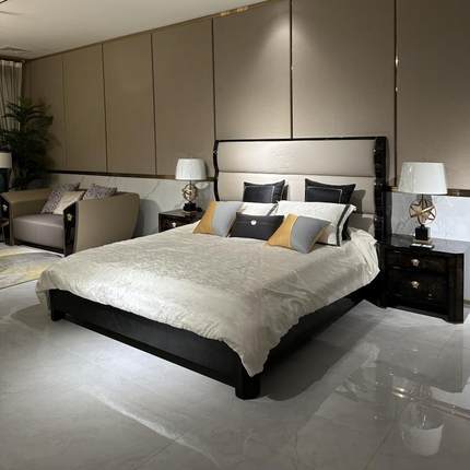 范思哲Versace实木床意式轻奢真皮婚床豪宅别墅高档全屋定制