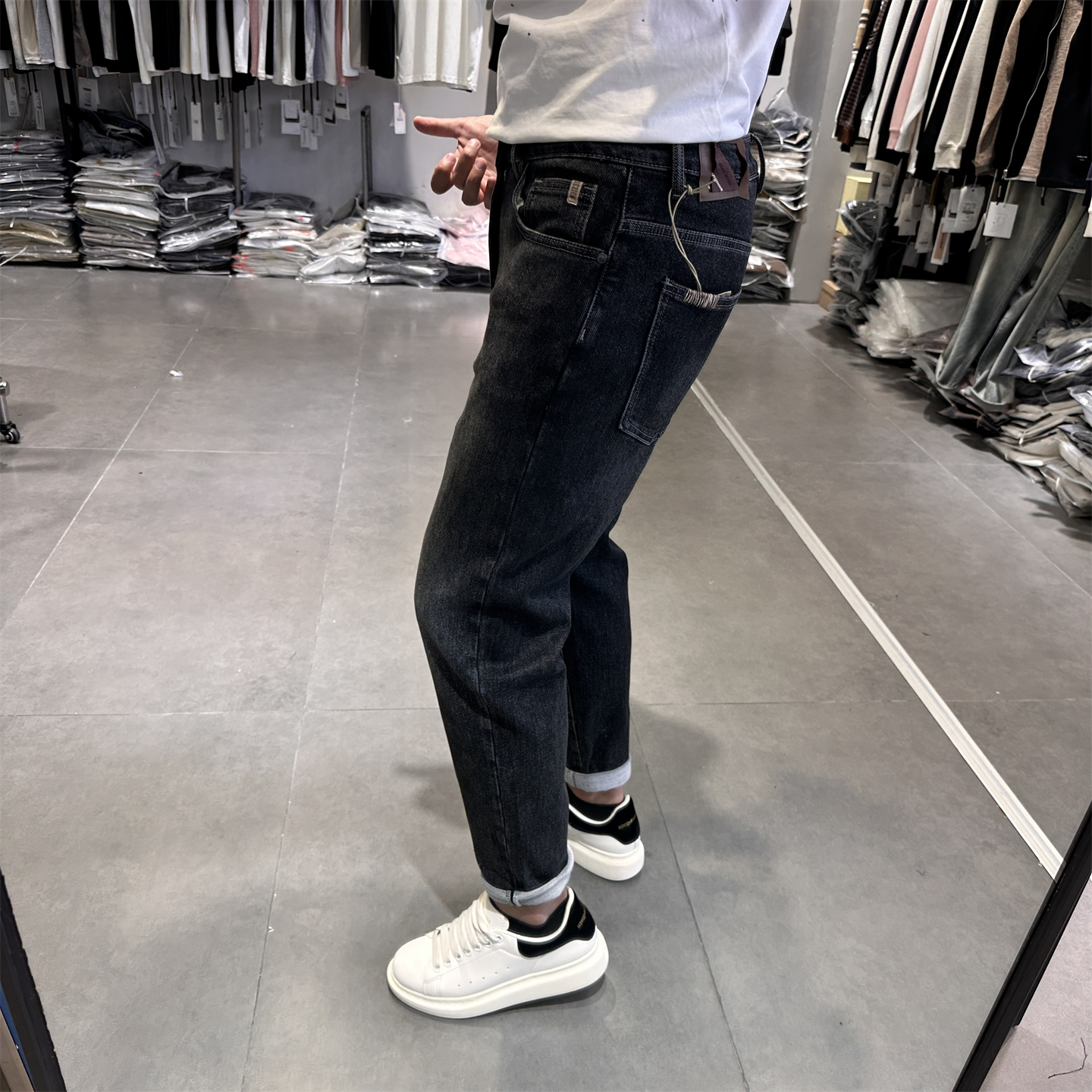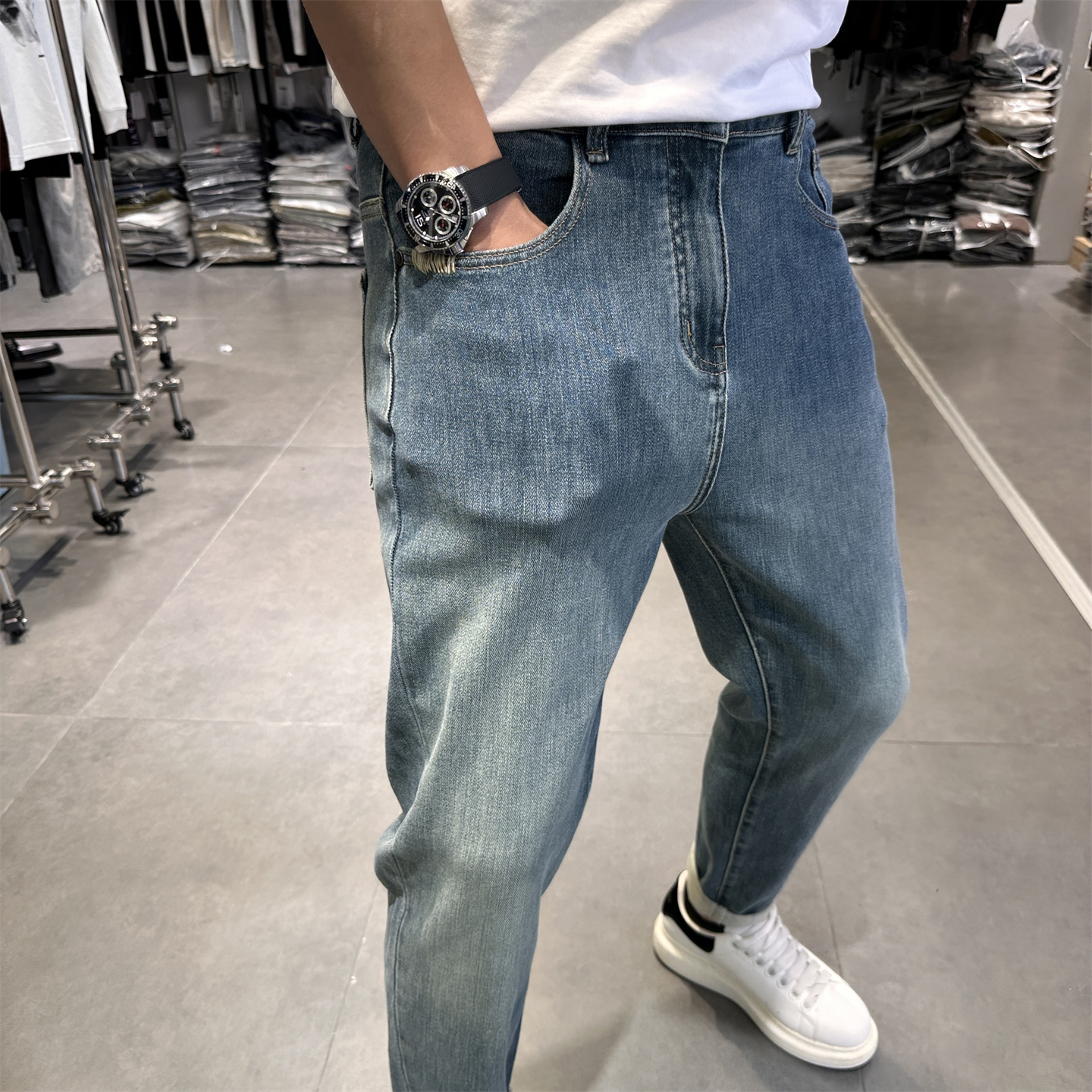 秋季美式复古浅蓝色牛仔裤男