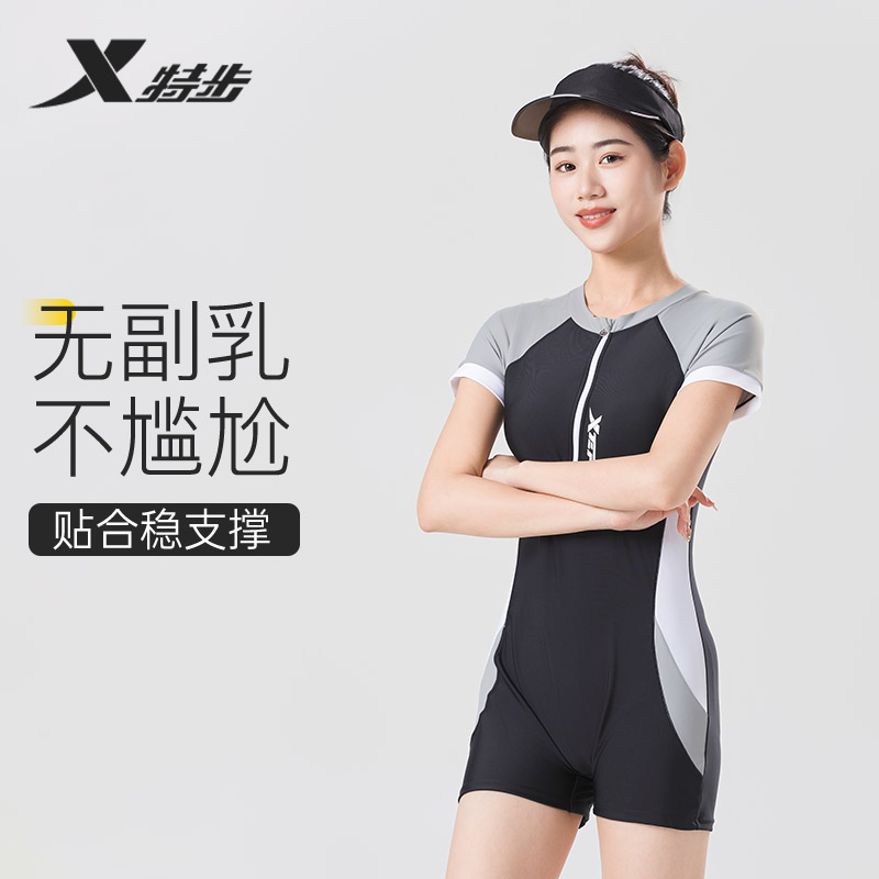 特步泳衣女2025新款专业游泳馆连体平角遮肚显瘦保守微胖大码泳装