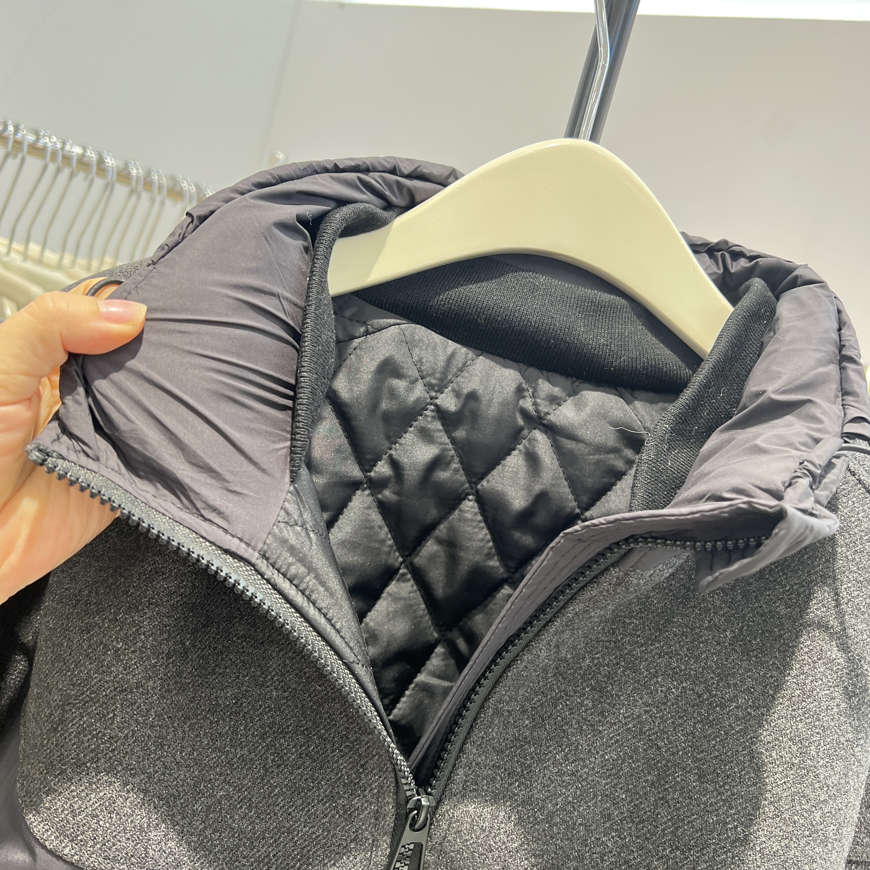 欧洲站25冬新款时尚拉链立领云朵泡芙排骨呢子拼接保暖短装羽绒服